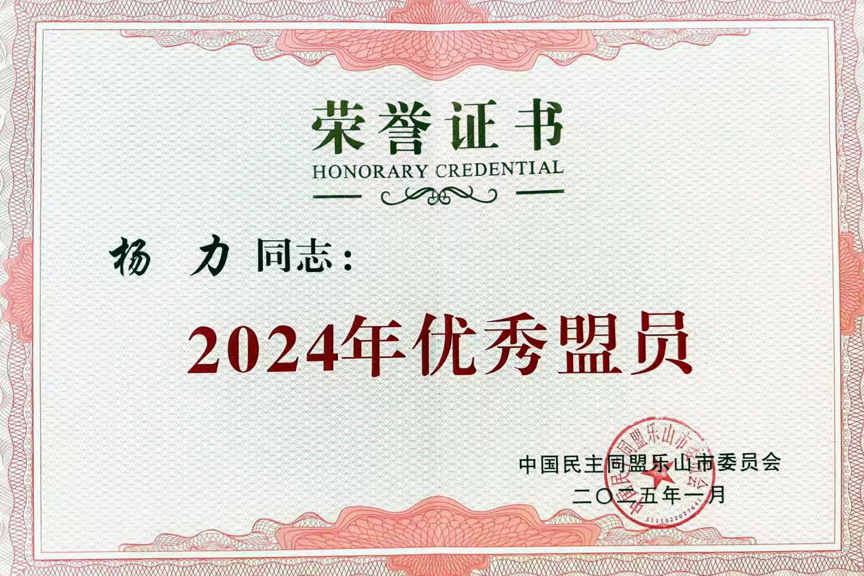 杨力荣获民盟乐山市“2024年优秀盟员”称号