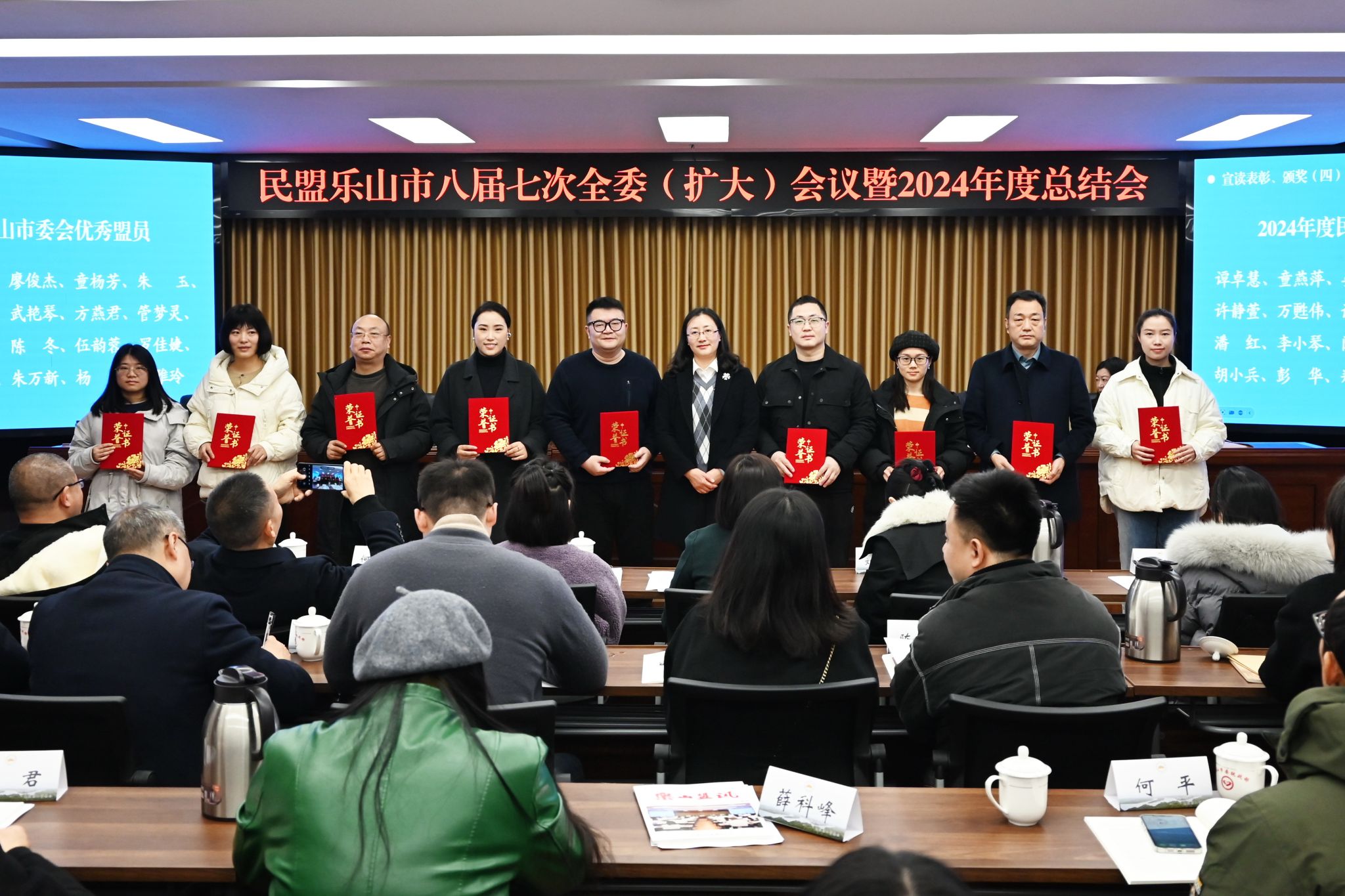 会议对2024年度乐山民盟先进基层组织、优秀盟员和先进个人进行表彰,举行了新盟员入盟仪式。