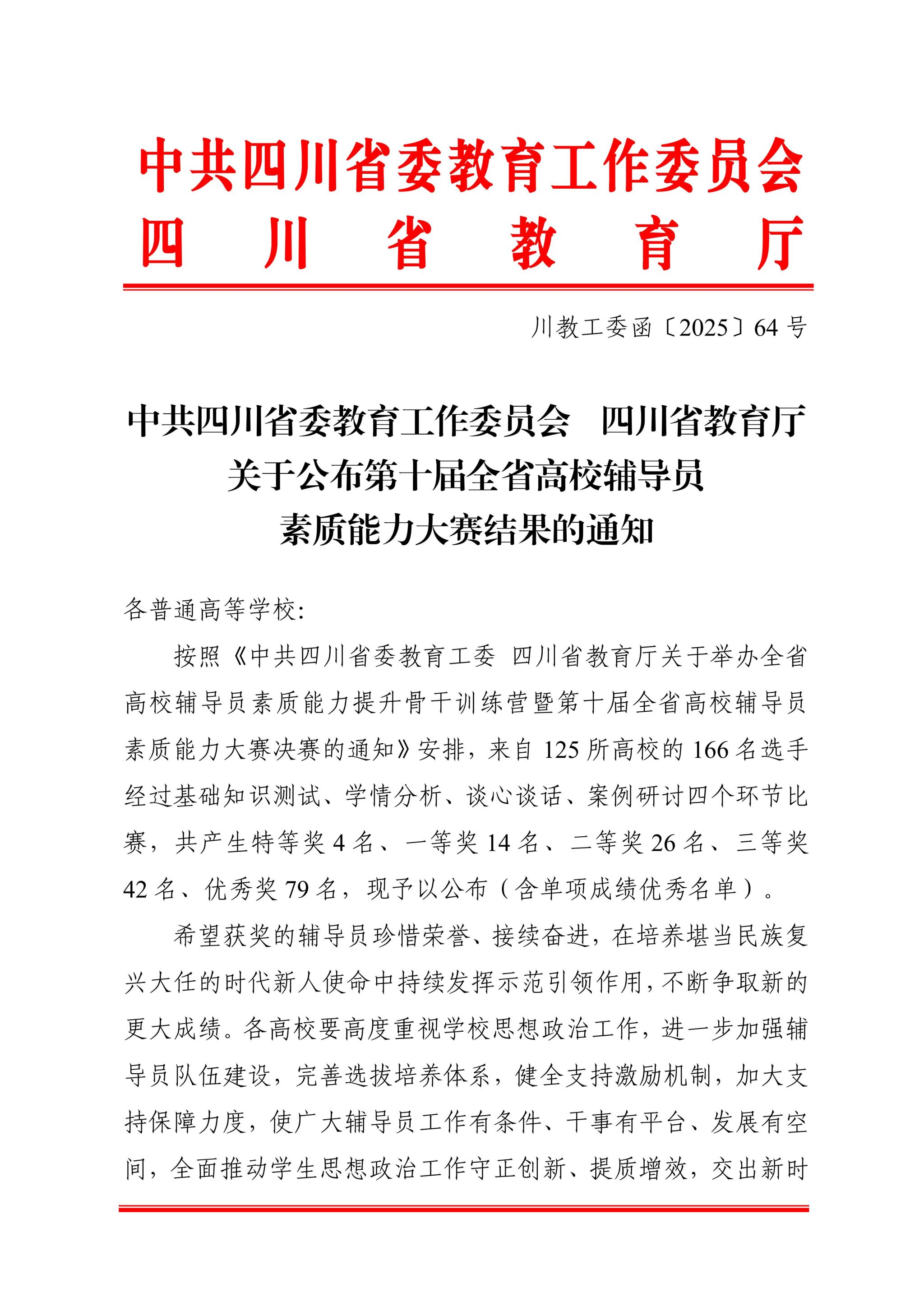 学校高度重视此次比赛,将其视为锻炼队伍、提升专业能力的重要平台。备赛阶段,党委学生工作部系统谋划、全力支持,不仅在校内组织了多轮选拔与模拟训练,还通过理论强化、案例剖析、情景模拟等形式,帮助彭诗洁老师系统梳理知识、提升实战技能。学校始终坚持“以赛促学、以赛促建”的工作思路,积极为辅导员创造学习交流、能力提升的机会与平台。