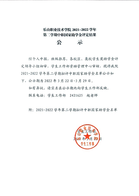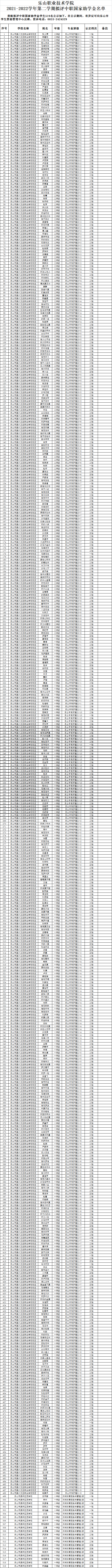 2021-2022学年国家助学金受助对变更的公示