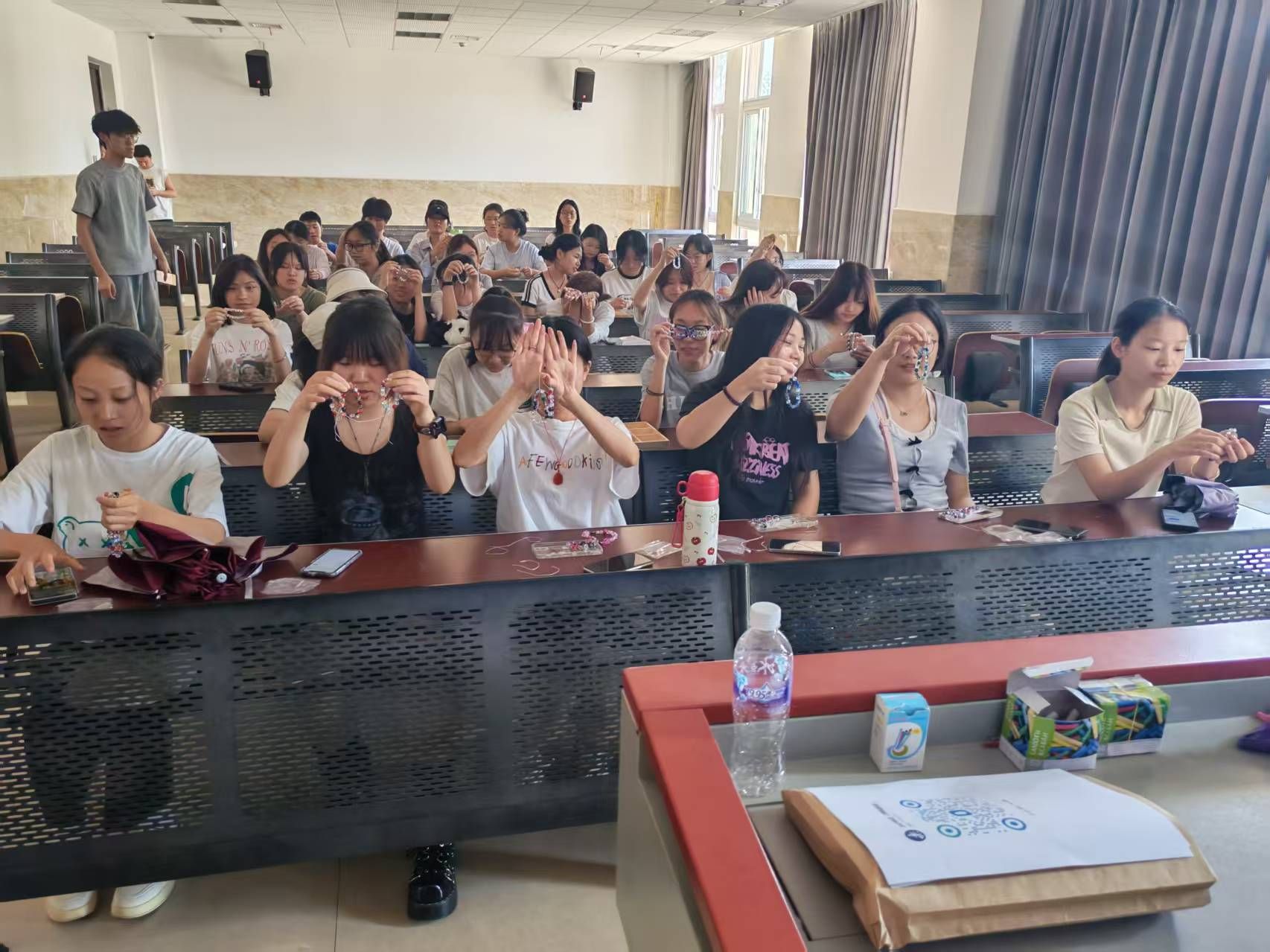 为弘扬中华传统手工艺文化,丰富校园文化生活,6月11日下午,sunbet申搏官方网站朋辈心理辅导社在教学楼2C103成功举办"香韵光珠,巧手编织"主题活动。活动吸引了众多学生参与,现场气氛热烈,同学们在体验传统手工艺的过程中,既感受到文化魅力,又实现了心灵放松。