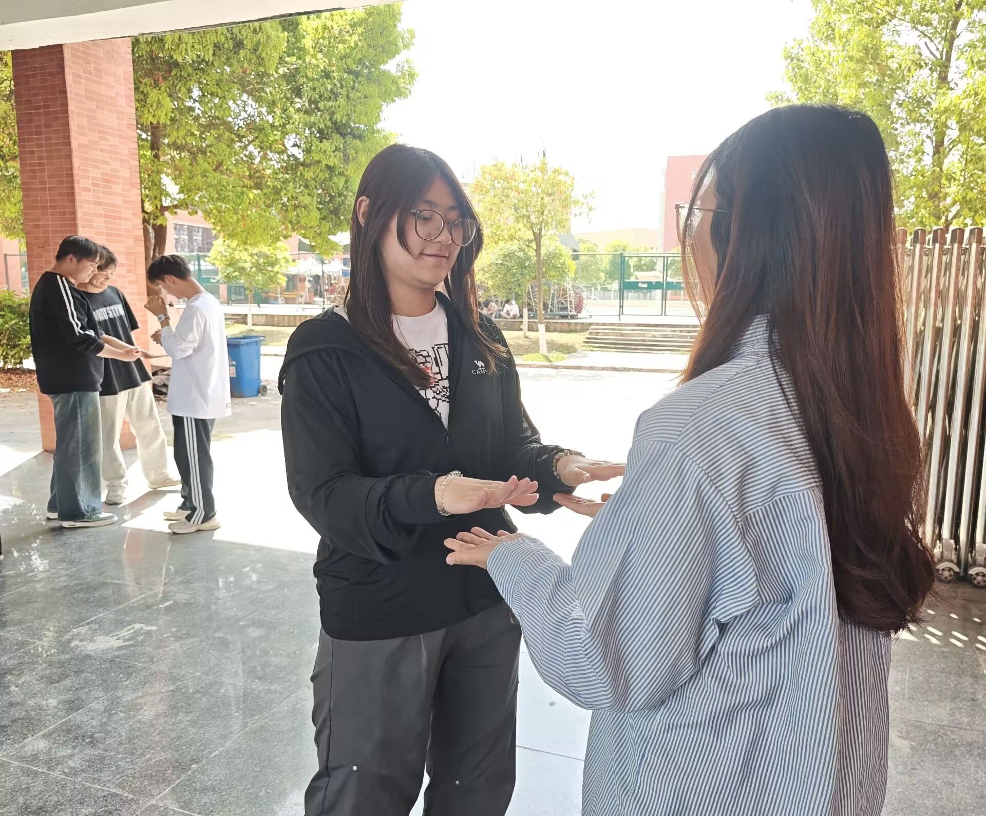 理论讲解后,全体学生在指导下开展养生步伐实践。跟随“大步流星”的节奏,同学们迈开步伐,感受气血流动带来的温热感;通过“扭转乾坤”的腰胯动作,体会经络舒展的畅快。活动还创新设计“阴阳掌”互动游戏,参与者通过调节拍掌频率,直观感知节奏变化对情绪的影响。现场欢声不断,一名同学分享:“拍掌时仿佛压力随节奏被‘震’出体外,身心瞬间轻松了许多。”