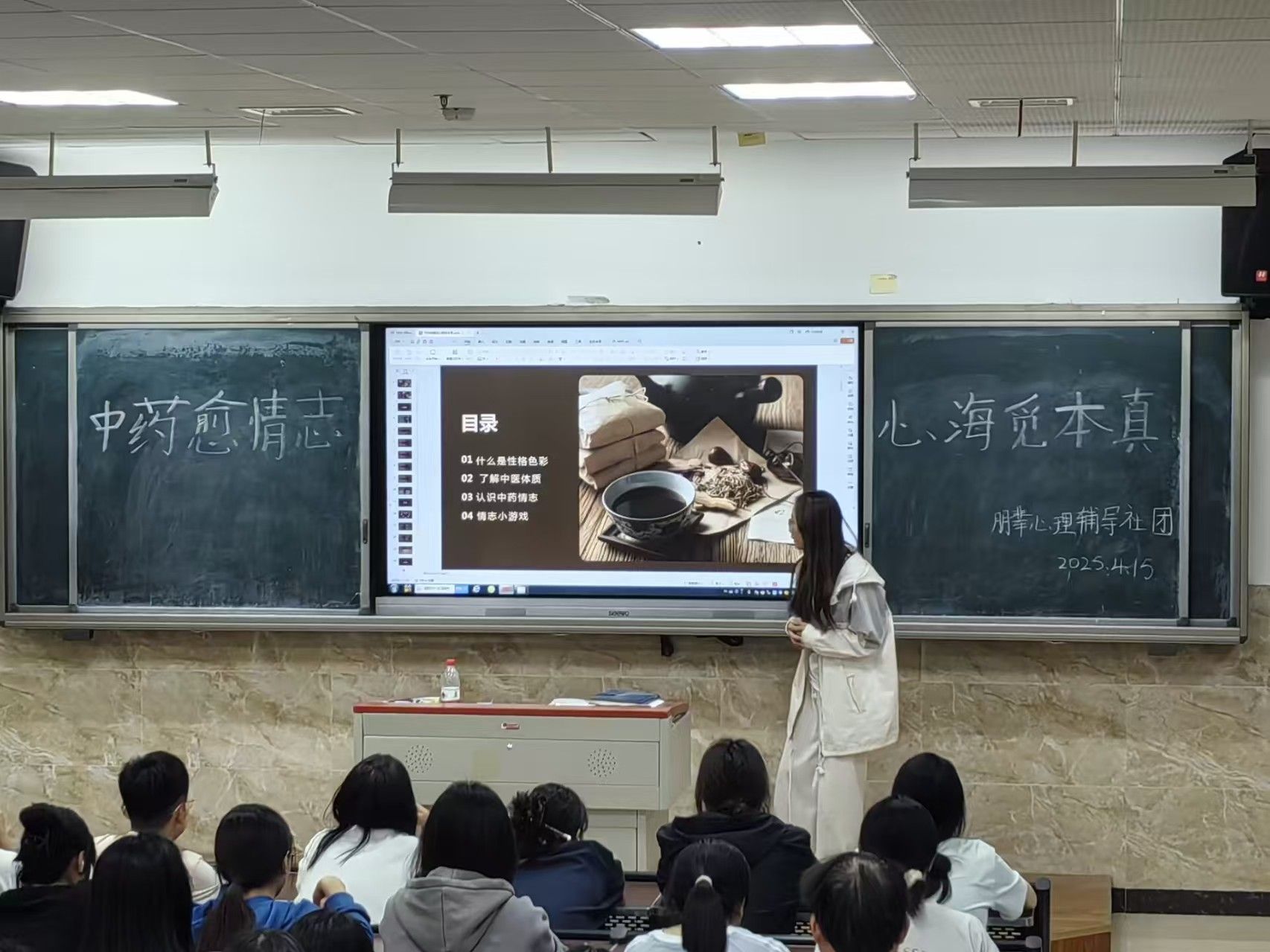 为帮助大学生更好地认识自我、接纳自我,提升情绪管理和人际交往能力,营造积极健康的校园心理氛围,sunbet申搏官方网站朋辈心理辅导于 2025 年 4 月 16 日 在 2c103 举办了“中药愈情志,心海觅本真”主题活动,活动吸引了全校 100 名学生踊跃参与。