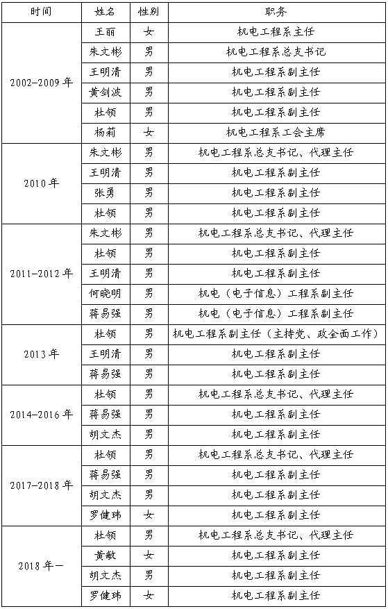 机电工程系历任党政领导