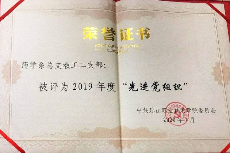 两个支部连续三年被学院评为“先进党支部”,2018年教师团队被四川省人社厅、教育厅授予“四川省教育工作先进集体”称号,2019年入选四川省第二批“职业院校紧缺领域教师技艺技能传承创新平台”名单,2019年教工二支部入选教育部第二批“全国党建工作样板支部”培育创建名单。2019年立项乐山市社科联课题《高职院校基层党建促业务工作实践研究》。