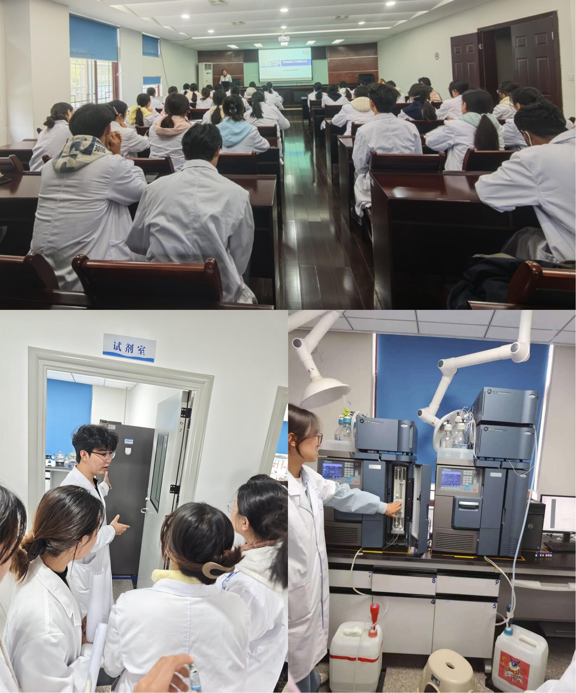 活动得到市食品药品检验检测中心的大力支持。中心副主任药师王丽琼首先为学生们介绍了中心的组织架构、主要职能以及药品检验从样品受理到报告发出的完整流程,并重点讲解了实验室安全注意事项,为接下来的实地参观做好准备。随后的参观环节颇有特色。正在该中心实习的申搏官网23级学生主动担任起讲解任务。结合几个月来的岗位实践经验,这些学长学姐带领学弟学妹们依次走进样品室、称量室、理化分析室、光谱室和液相色谱室。每到一处,实习学生都结合工作实际,讲解该实验室承担的主要检验任务、核心设备的功能和基本操作,以及工作中的注意事项。从高效液相色谱仪到紫外可见分光光度计,这些书本上的名词变成了眼前正在运行的设备,抽象的理论知识与真实的工作场景得以衔接。