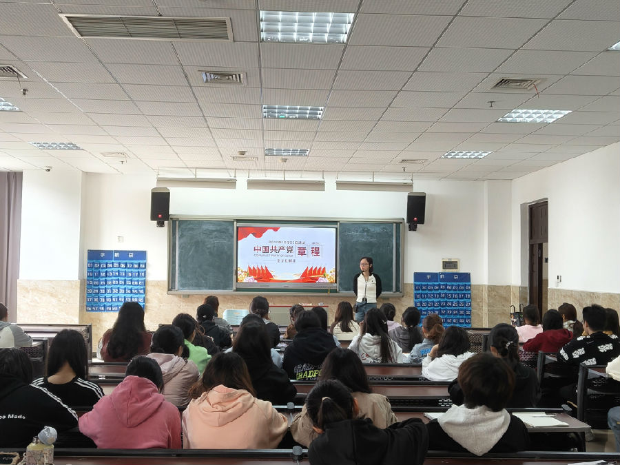 黎缘老师将党章分为4个部分进行讲解,包括党章的中心思想,党章的发展历程,党章的重要性,以及党章1-19章的基本内容。讲解过程中黎缘向大家明确强调中国共产党是中国工人阶级的先锋队,是中国特色社会主义事业的领导核心,同时也是中国人民和中华民族的先锋队,是中国特色社会主义事业的领导核心,代表中国先进生产力的发展要求,代表中国先进文化的前进方向,代表中国最广大人民的根本利益。这一根本性质决定了共产党员具备的先进性与人民性。最后黎老师为大家进行了廉洁教育,为同学们列举了许多先辈们节俭的例子告诉同学们现在生活的来之不易。