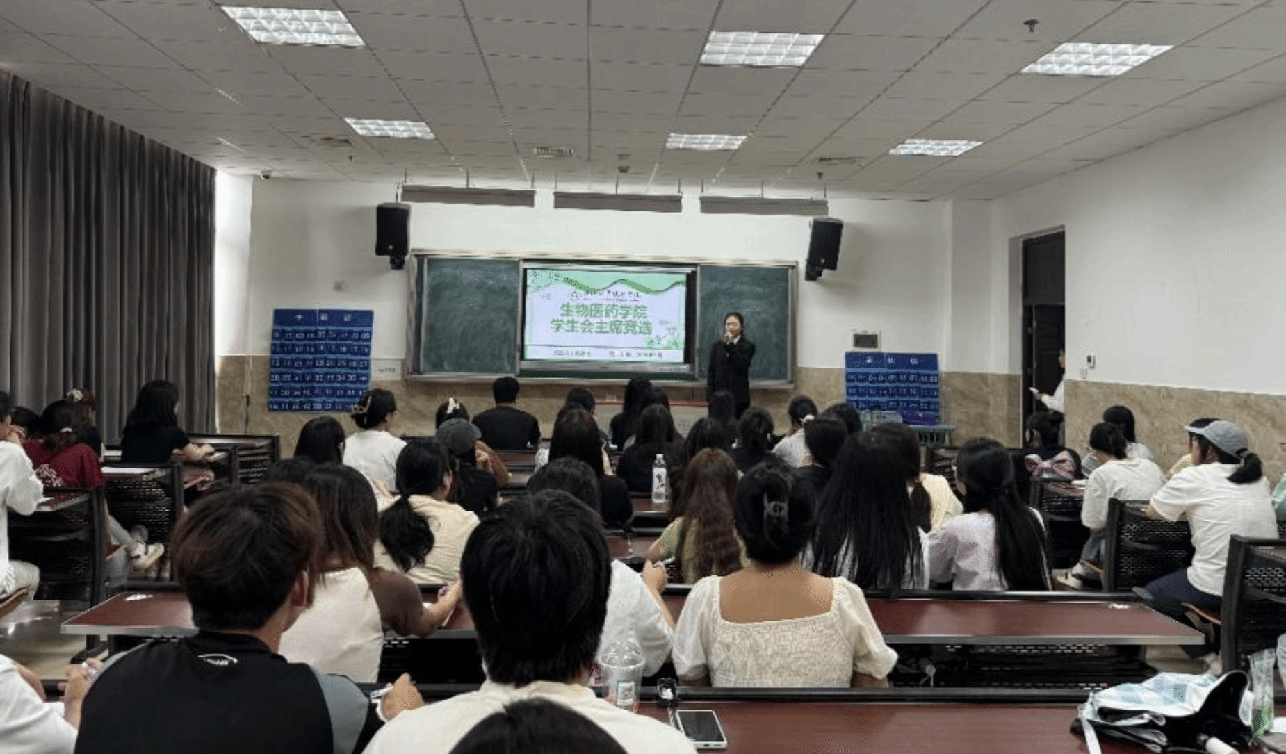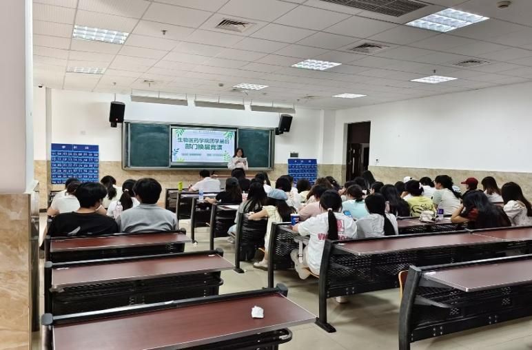 为进一步加强生物医药团委学生会及社团干部队伍建设和学生工作的创新发展,生物医药学院于2025年4月30日、5月18日、23日、25日在教学楼成功举办团学易创及社团学生干部换届通用能力测试和竞选活动。参与竞选的评委老师有生物医药学院党总支副书记靳婕、生物医药学院学生科科长及本草社指导老师张俊、本草社指导老师黄泓轲、新心药学协会指导老师陈曦、阳和养生社指导老师周莉江、生物医药学院团委书记朱晓琴,以及在校学生干部50余名。