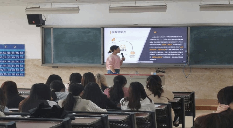 13:00宣讲会正式开始。泉源堂智慧药房主讲人讲述了品牌logo、历程、业务优势、互联网与运营模式、合作伙伴,并通过播放视频加深同学对企业的了解。随后主讲人又对员工福利,晋升空间等进行阐述。这一环节引起了在场学生的广泛关注,主讲人以丰富的数据和生动的案例,为学生描述一个充满机遇与挑战的未来。在宣讲会结束后,大家纷纷积极参与药店的面试,争取在医药行业中实现自己的价值,此次校招圆满成功。