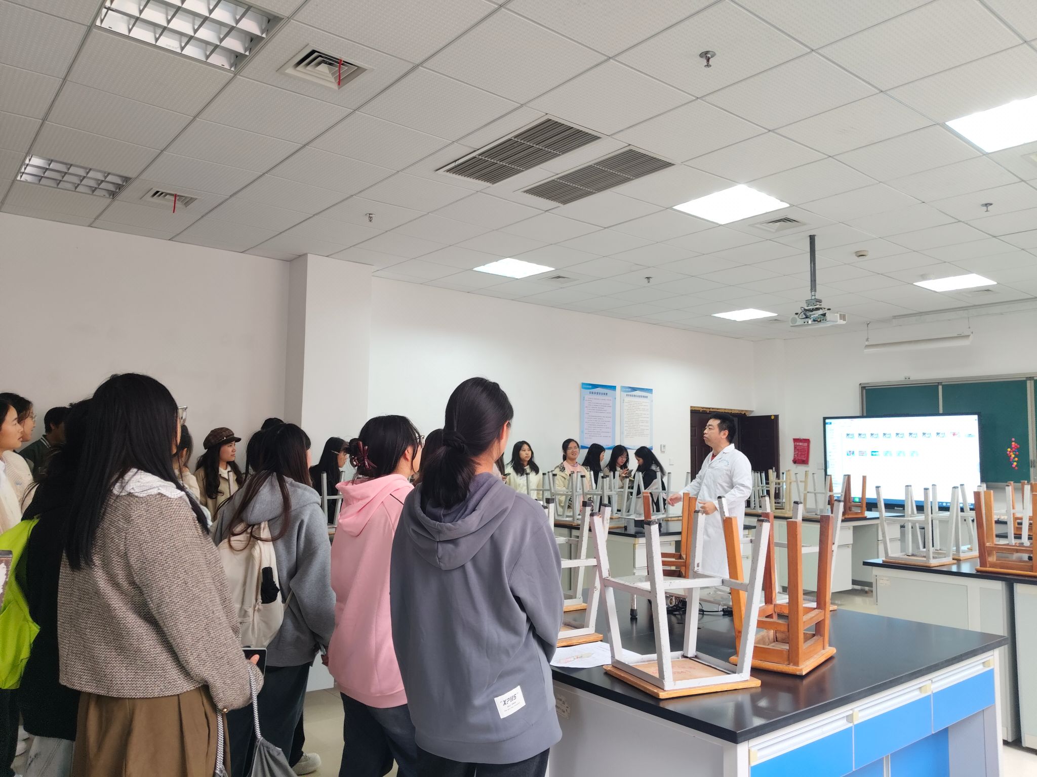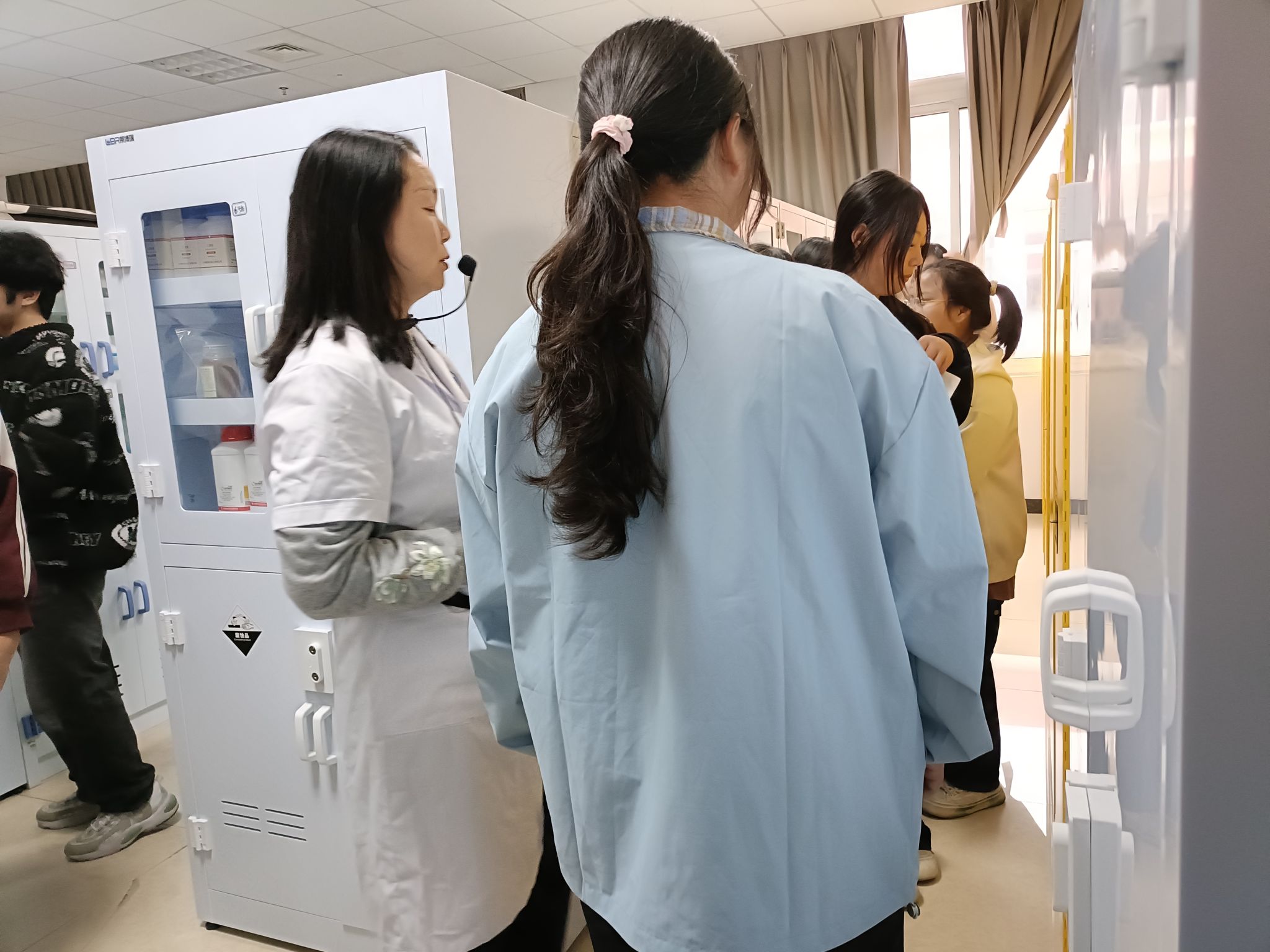 在随后的实训室安全认知学习中,各专业教师就个人防护用具的正确佩戴、仪器设备使用前的安全检查、紧急喷淋装置的使用等关键环节进行了系统指导,旨在确保每位学生掌握必备的安全技能,共同维护安全、规范的实训教学环境。