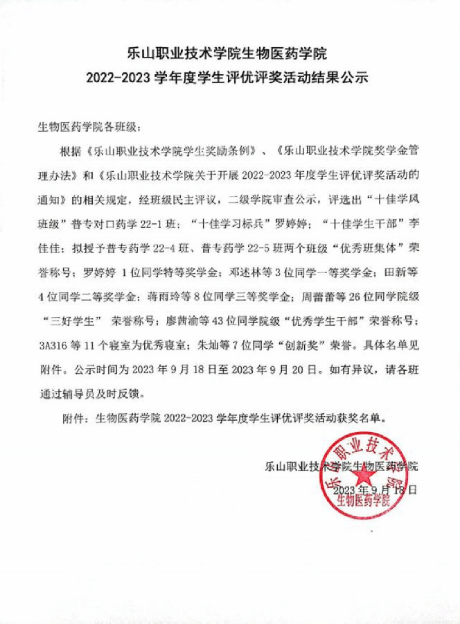 上一条: 生物医药学院2023年暑期社会实践优秀团队及优秀个人评选活动结果公示