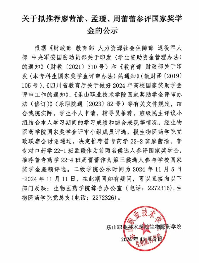 下一条: 生物医药学院关于拟推选廖茜渝等 17 名同学 为2025届省优毕业生的公示