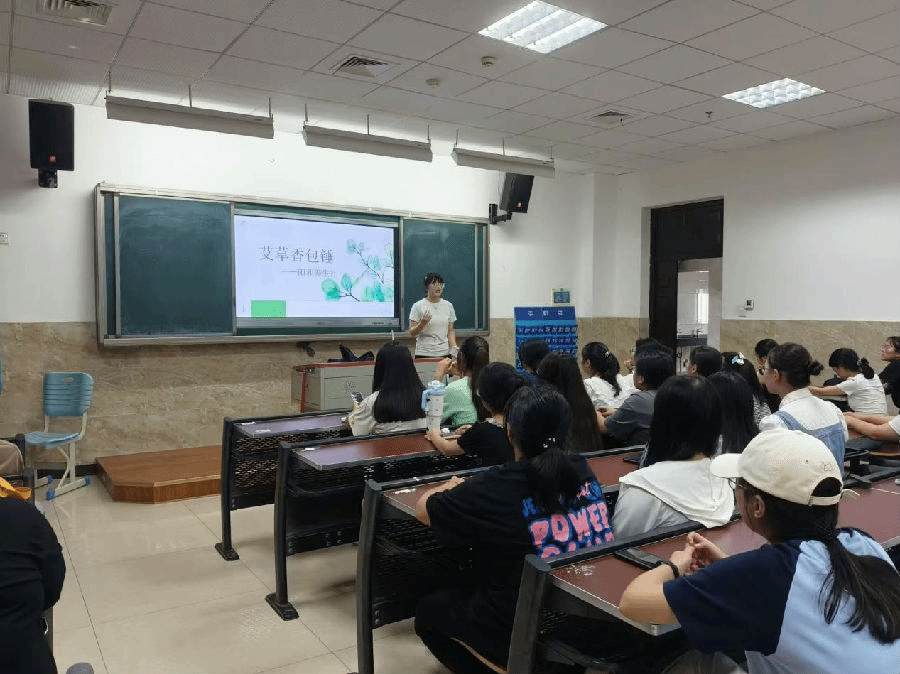 为鼓励大家分享体验,活动还特别设置了心得分享环节,几位幸运的同学被随机抽取上台,他们兴奋地讲述着自己制作艾草锤的过程中的趣事与挑战,以及对艾草文化的全新认识和感悟,赢得了阵阵掌声。