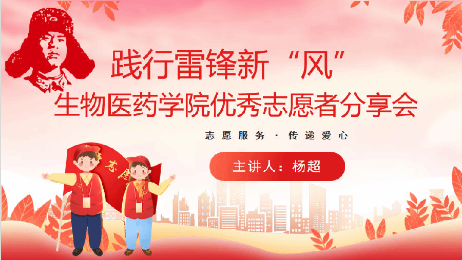 2024年3月31日晚上7点,生物医药学院面向全体同学通过线上腾讯会议开展了“践行雷锋新“风”-生物医药学院优秀志愿者分享会。此次活动以“志愿活动分享”为主题,特邀优秀志愿者普专中药学22-1班杨超作为主讲,与大家分享他的志愿活动经历与感悟。