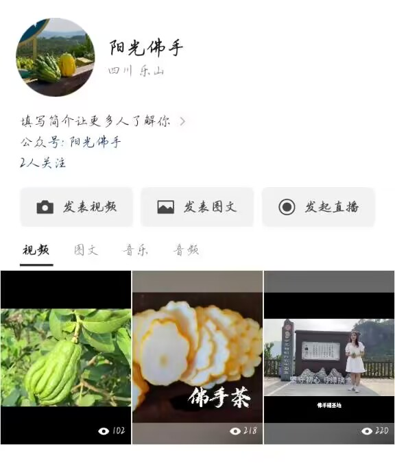 暑假期间,佛手阳光队将制作的佛手药用、食用、观赏文化等宣传视频发布在抖音、公众号等平台进行推广,视频结合了丰富的佛手文化元素,让人们在观看过程中领略到佛手文化的韵味。截至目前,短视频点击量达2000。