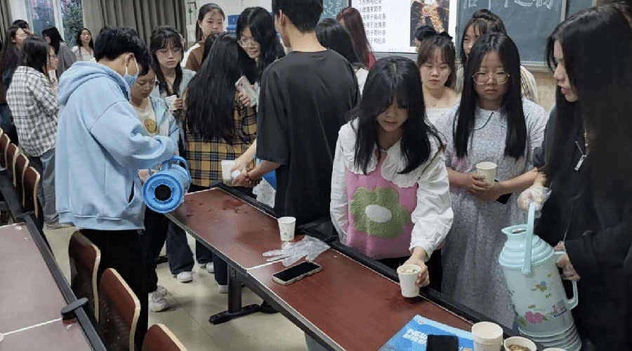 下午六点,工作人员提前到达活动地点进行活动材料用具的准备和现场的布置。一切准备就绪后,由主持人先为同学们讲解茶品的功效,同时工作人员泡了几款茶品,为后期品茶猜茶小游戏做准备。随后,主持人为我们讲解药茶的配伍关系,如玫瑰红枣茶、枸杞红枣茶、茉莉绿茶、决明子荷叶茶等,并邀请了几位社员进行品茶、猜茶。最后,便是品茶赏乐环节,社员们依次排队选择自己想要的茶品进行泡茶,选好后由工作人员统一倒入开水进行泡制。在等待泡茶的过程中,笛声悠扬社为大家带来音乐表演,同学们都默契地打开了手机闪光灯,随着音乐的节拍一起摇摆,一起歌唱。