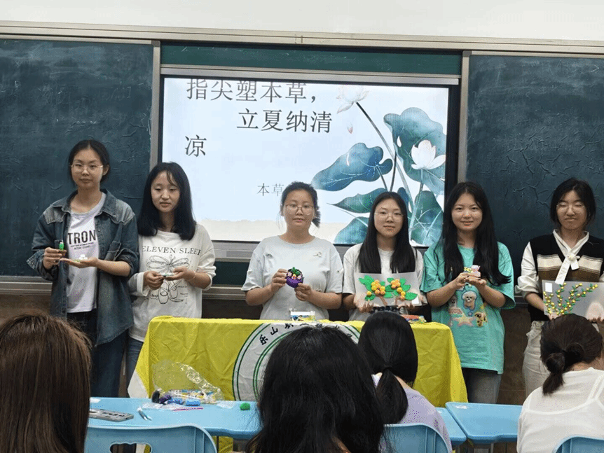2025年5月7日18:30生物医药学院本草社于教学楼2B302教室成功举办了“指尖塑本草,立夏纳清凉”主题活动,本次活动吸引30名社员参与,以创意粘土制作中草药模型为核心,融合节气科普与传统文化体验,旨在深化节气认知、普及草药智慧,激发参与者对中医药文化与传统节气的热爱。