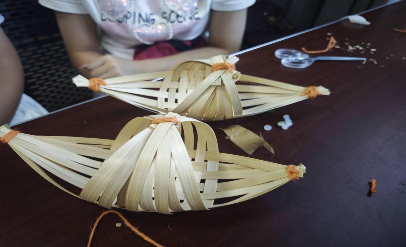 理论学习环节结束后,便进入了充满趣味与挑战的制作环节。工作人员为每个小组发放了精心挑选的竹片以及结实的绳子。同学们纷纷化身“小工匠”,全神贯注地投入到竹编小船的制作中。他们或低头仔细编织,或相互交流技巧,现场气氛热烈而温馨。