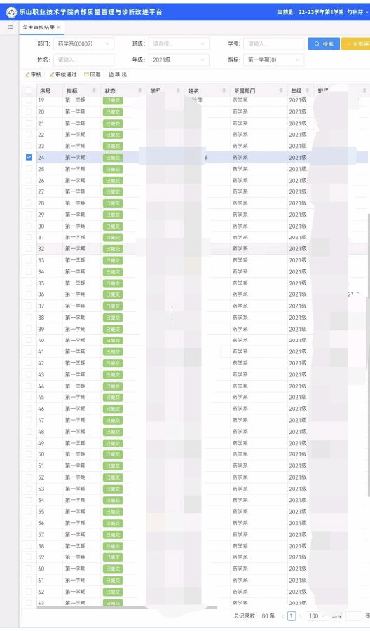 为切实做好诊改复核回访工作,积极响应学院号召,按照《sunbet申搏官方网站迎接内部质量保证体系建设与运行复核回访工作实施方案》文件要求,药学系秘书部和组织部在2022年7月初至10月18日期间共同开展了新版系统学生诊改工作,并全面完成诊改系统的数据录入。