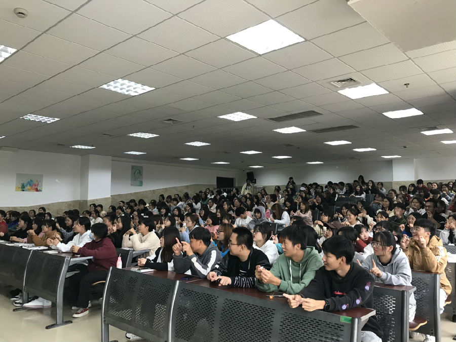 张永芳讲师首先提出“大学是什么?”的问题,调起同学们的兴趣及思考。随即讲述了大学生活的变化与不同,并且在此期间与同学们积极互动,用了一个小游戏“手指数字操”来活跃大家的氛围;然后讲述了许多解压方式,比如:与朋友同学讲述自己的心理问题、每天运动来让自己分泌更多的多巴胺让自己变得开心,以及让身边的人多夸夸自己等方法来解决自己的烦恼问题。张老师最后用“希望大家以和谐的心态,健康的心理快乐地度过属于自己的大学生活”结束了本次的讲座活动。