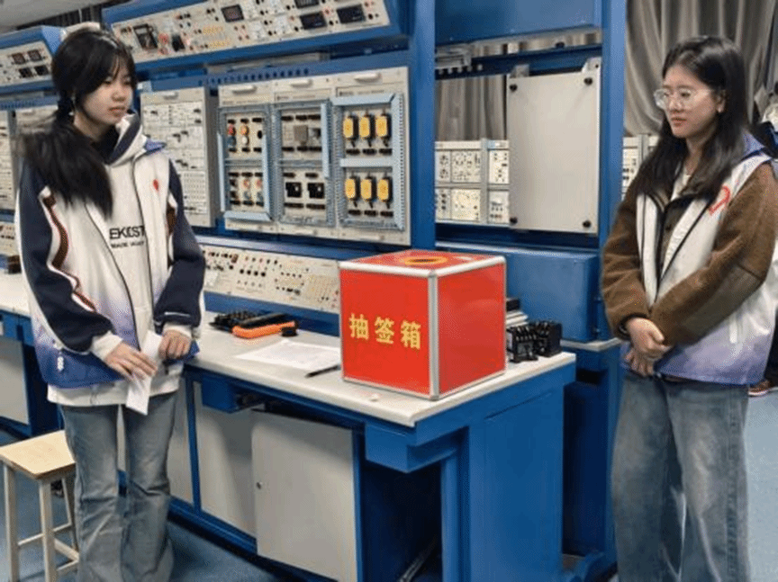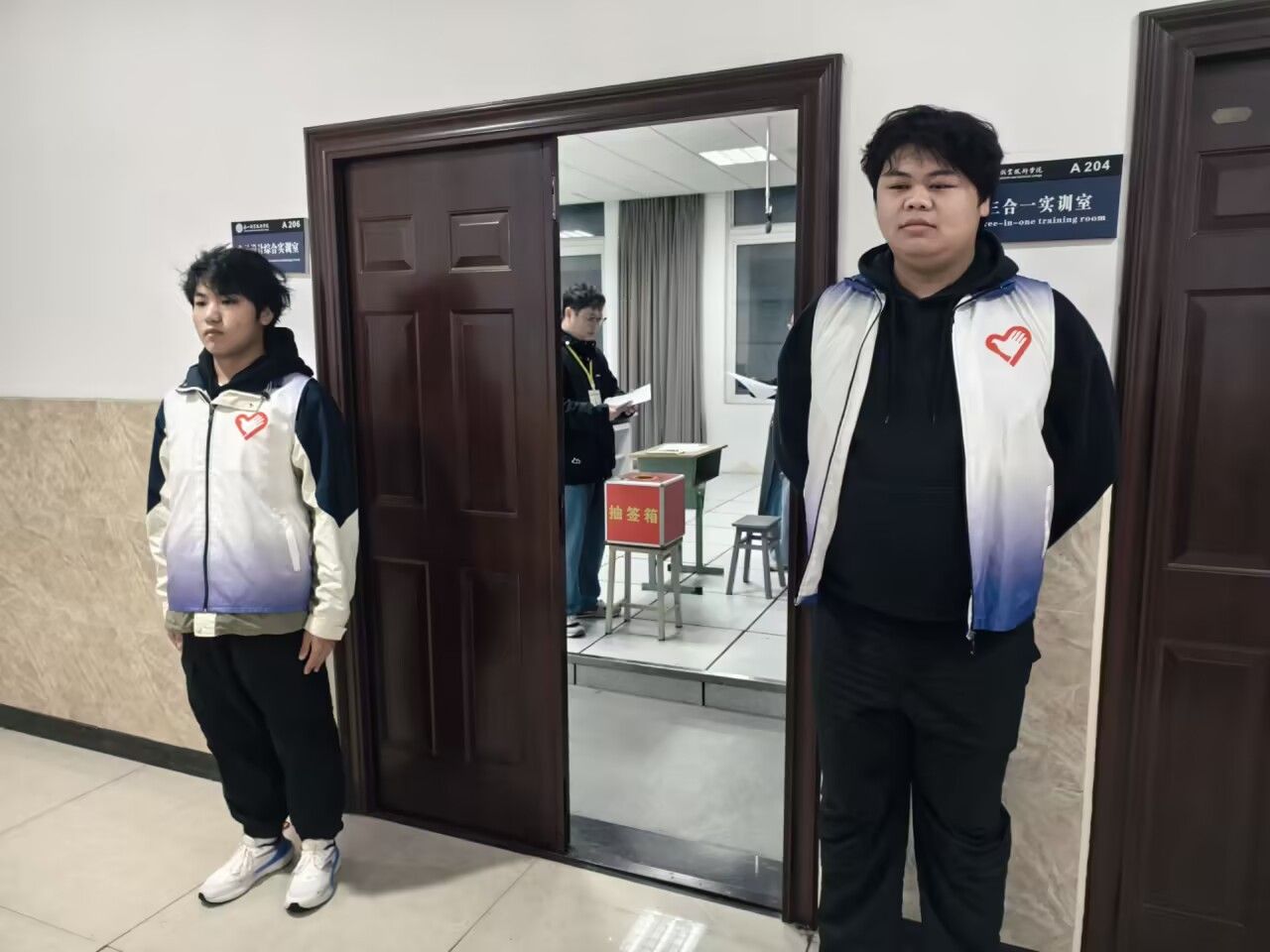 大赛启幕之际,志愿者团队集结于指定楼层,以饱满的状态投入。在指导老师明确职责后,保障工作正式启动:志愿者们分工协作,有的值守赛场入 口以维护秩序,有的统筹赛事抽签环节以保障流程规范。全体志愿者以严谨细致的工作作风、踏实负责的态度来护航赛事,为大赛的落幕筑牢了坚实后盾。