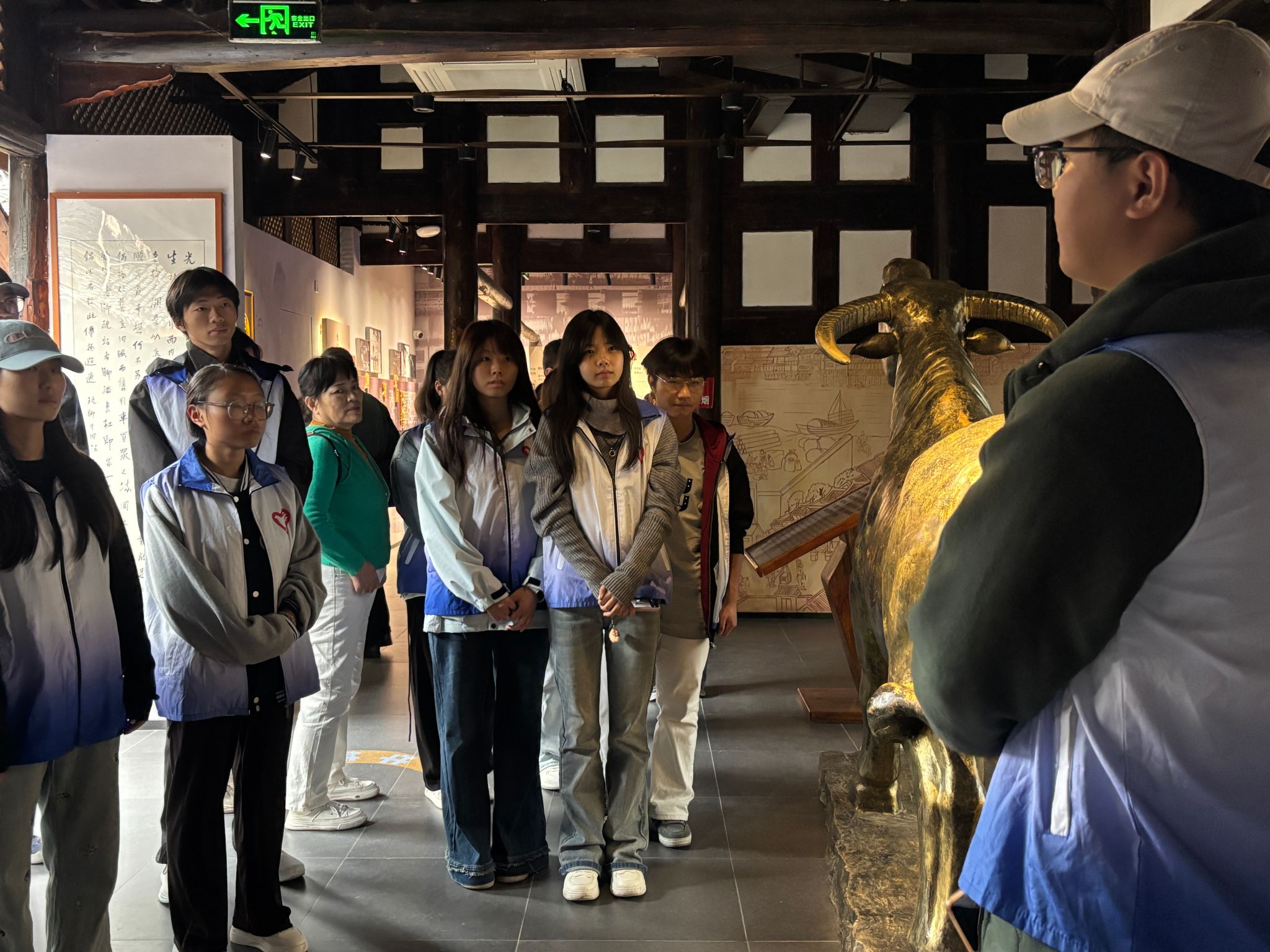 活动开始,宣传部部长邓诗黎锋带领学生深入了解苏稽古镇历史,从老戏台到古镇历史,重点围绕古镇文化、饮食习惯等展开宣讲,结合实际情况、日常生活等,追根溯源让同学们直观感受整个古镇的风土人情。同时,引导学生将古镇未来发展与专业相结合,讲述文旅创新发展与人工智能融合,现场氛围热烈且富有成效。在廊桥我们回顾古镇的青瓦木墙,面向新时代的勃勃生机。感受时代完美地诠释了苏稽如何在时光的流转中,将过去、现在与未来紧密相连。