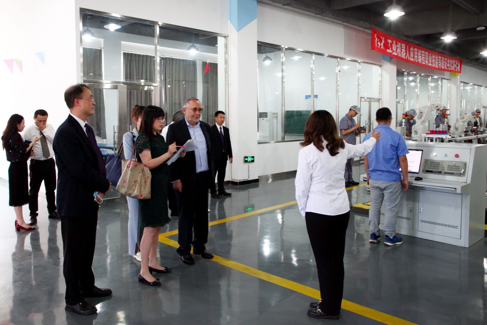 迪亚兹一行先后参观了学院太阳能研究院、工业机器人系统集成中心、康复实训室,了解了学院的办学规模、发展概况、专业实训和人才培养等情况,观摩了工业机器人、康复理疗课堂教学,并就专业实践教学与任课教师进行了交流。