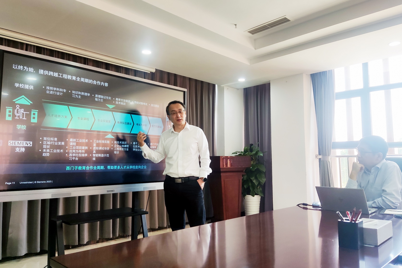 会上,王涛介绍了西门子(中国)有限公司在产教融合与数字产品线方面的现状和规划。学校教务处希望校企合作、产教融合要立足于专业建设、人才培养和乐山产业实际做深、做实,推进校企协同育人的人才培养模式落地生根。