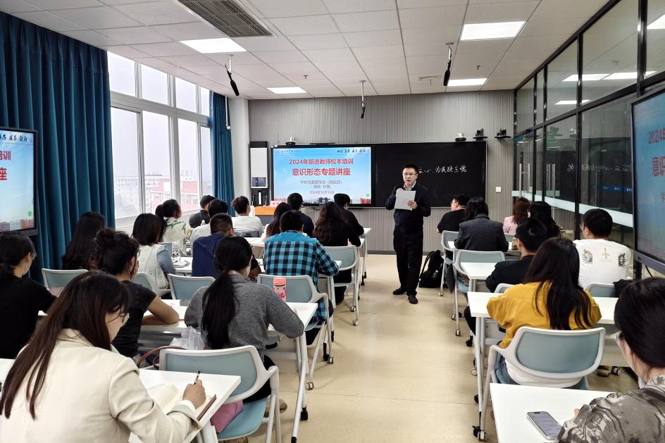 2024年10月16日下午,学校2024年新教师校本培训(二)在图书馆教师发展中心举行。学校党委委员、宣传部(统战部)部长钟翼,教务处副处长彭瑶瑶分别就意识形态和教学工作进行专题培训。