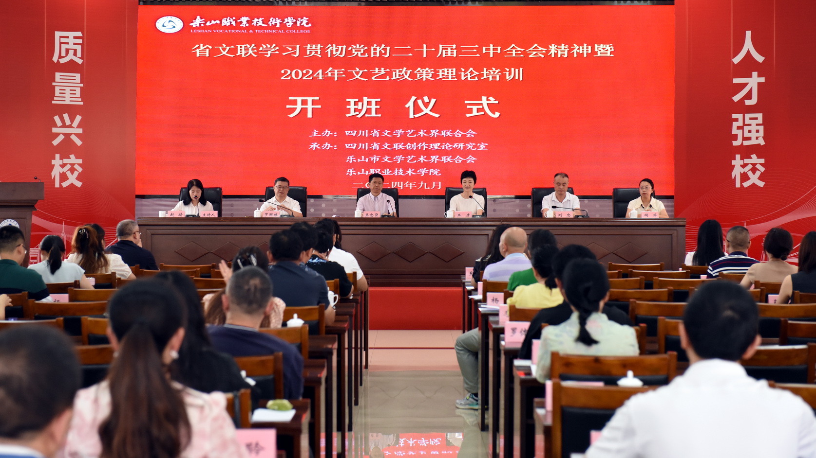 9月9日上午,四川省文联学习贯彻党的二十届三中全会精神暨2024年文艺政策理论培训班开班仪式在学术交流中心3004会议室举行。来自省文联机关各处室、各省级文艺家协会、省文联直属企事业单位、各市州文联的负责人以及文联派驻理县驻村干部参加了此次培训。乐山市委常委、市政府副市长王彦、乐山市文联主席罗国雄、sunbet申搏官方网站校长刘忠出席开班仪式并讲话,学校党委委员、副校长周芹参加开班仪式。