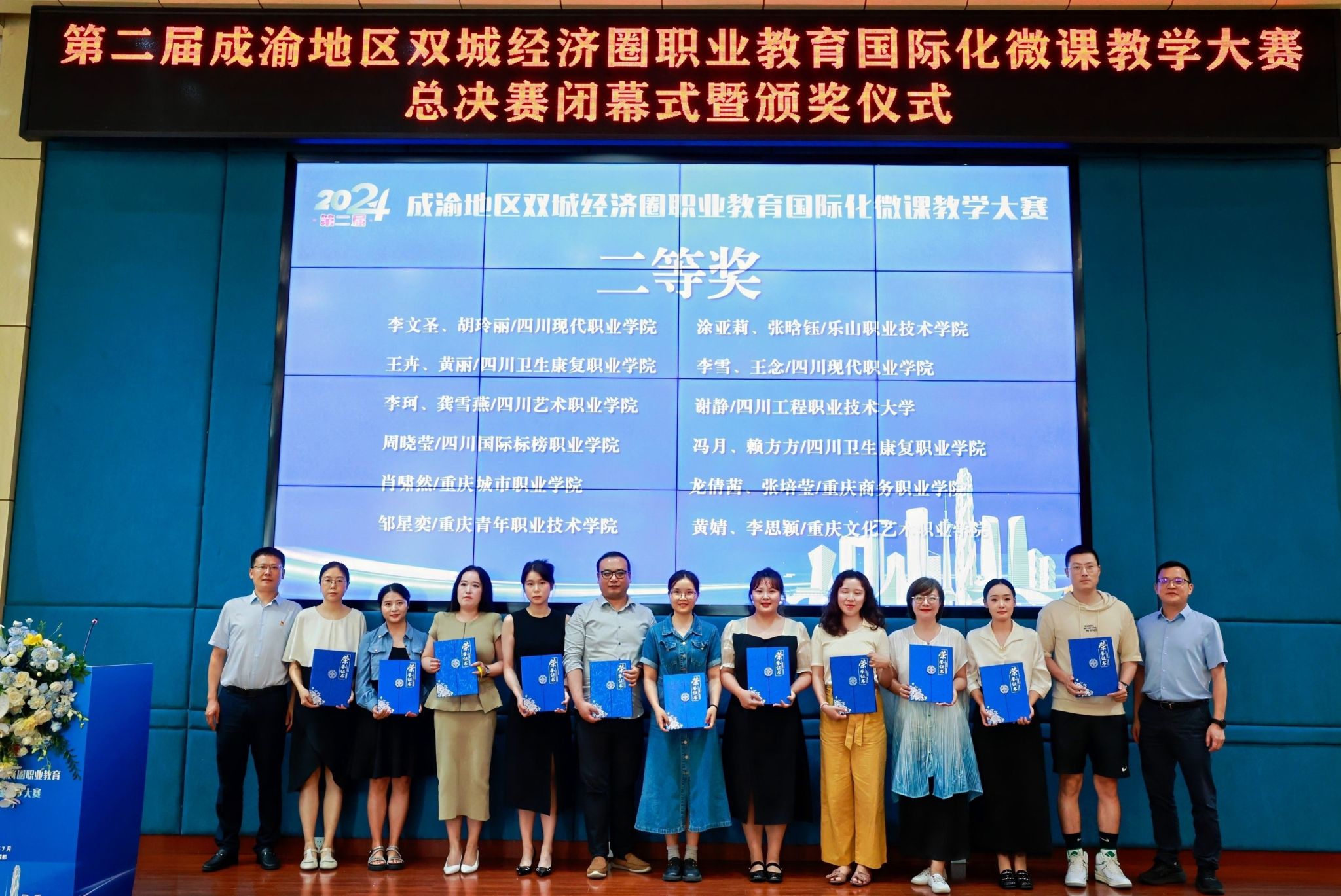 本届成渝地区双城经济圈职业教育国际化微课教学大赛由四川省教育厅、重庆市教育委员会主办,成都航空职业技术学院、重庆工商职业学院、陆海新通道职业教育国际合作联盟承办,国家开放大学数字化学习资源中心协办,共吸引成渝两地78所院校参赛,汇集参赛作品共计261个,涵盖装备制造、土木工程、生物与化工、财经商贸等19个专业大类。经过各学校初赛、省级复赛,本次比赛共有来自成渝两地职业院校的90件作品获奖,43件作品进入总决赛。