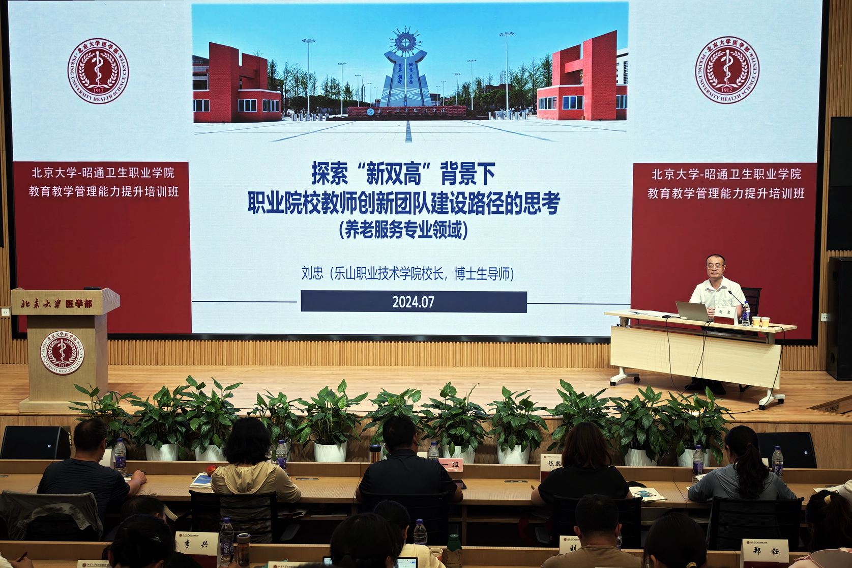 7月10日,sunbet申搏官方网站校长、博士生导师刘忠受邀到北京大学医学继续教育学院,为该院管理培训班学员作“国家级职业教育教师创新团队建设”专题授课。