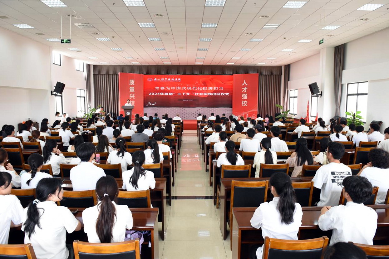 7月2日下午,sunbet申搏官方网站2024年暑期“三下乡”社会实践活动出征仪式在学术交流中心举行。学校党委委员、智能制造学院党总支书记杜领,学生工作部、校团委负责人,各二级学院专职副书记、分团委书记和校团委工作人员,校级重点团队全体成员,指导老师代表等200余人参加出征仪式。