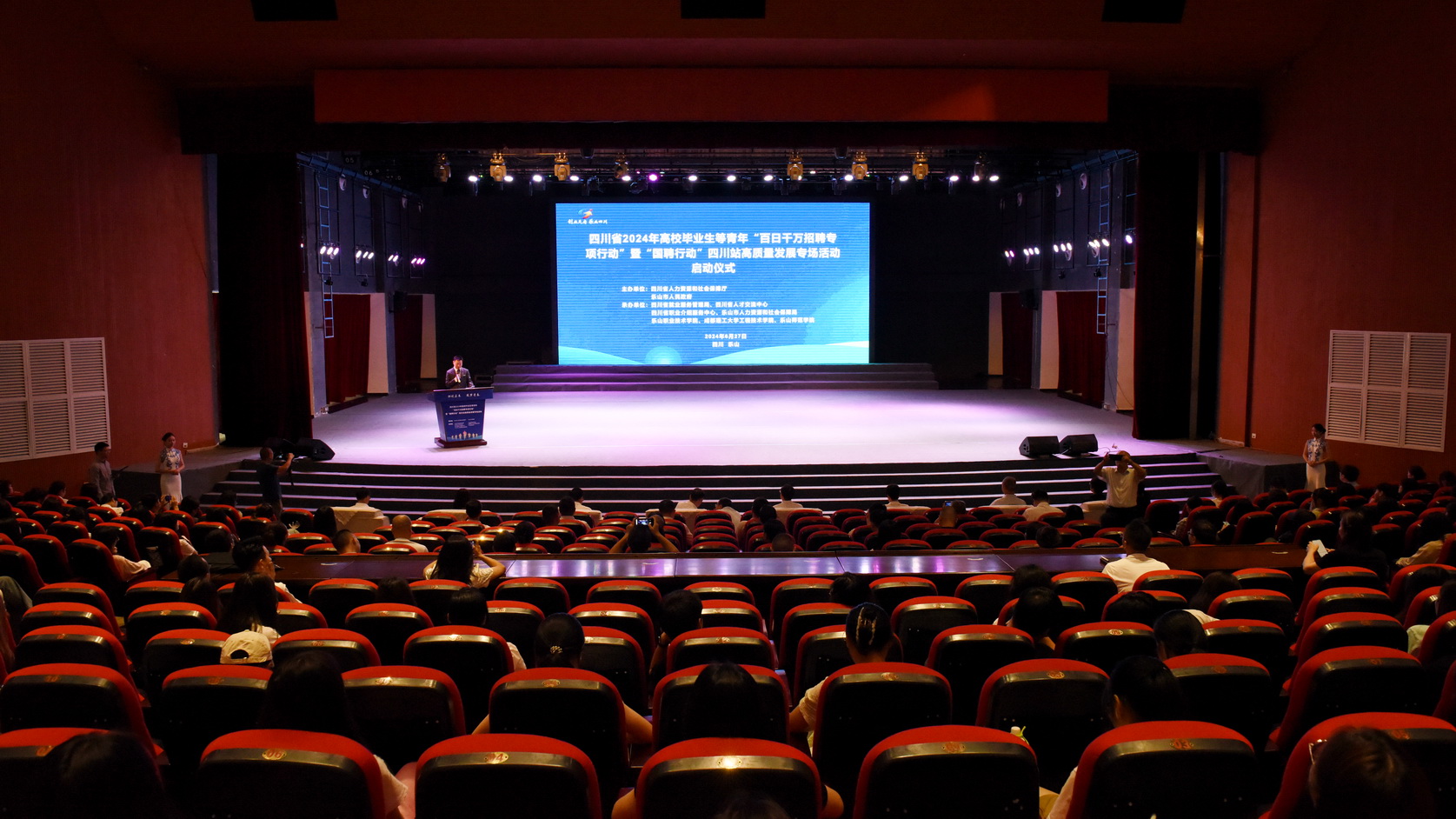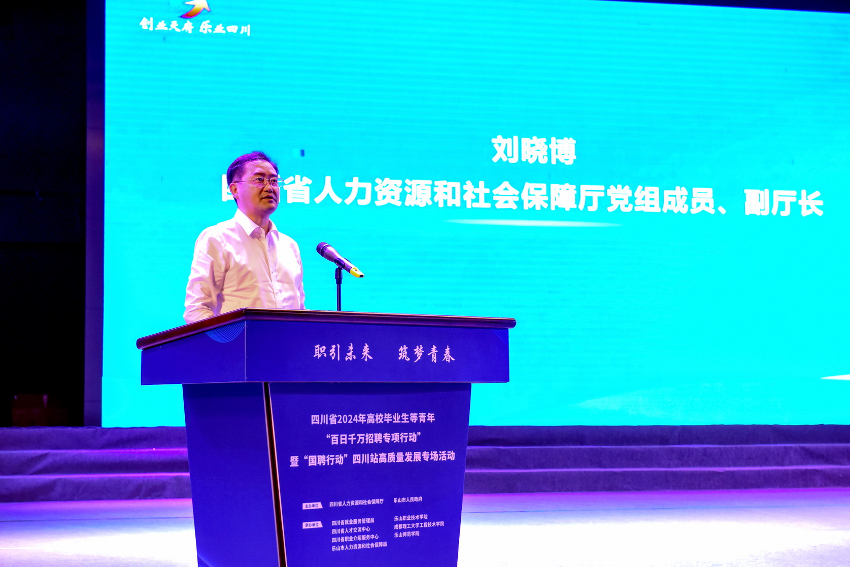 6月27日上午,四川省2024年高校毕业生等青年“百日千万招聘专项行动”暨“国聘行动”四川站高质量发展专场活动启动仪式在sunbet申搏官方网站举行。四川省人力资源和社会保障厅党组成员、副厅长刘晓博,四川省就业服务管理局党委书记、局长王祎,乐山市委常委、副市长王彦,sunbet申搏官方网站党委书记成定彬,乐山市政府副秘书长张丽宾,乐山市人力资源和社会保障局党组书记、局长刘剑出席活动。来自乐山各高校的应往届毕业生参加了启动仪式和现场招聘活动。