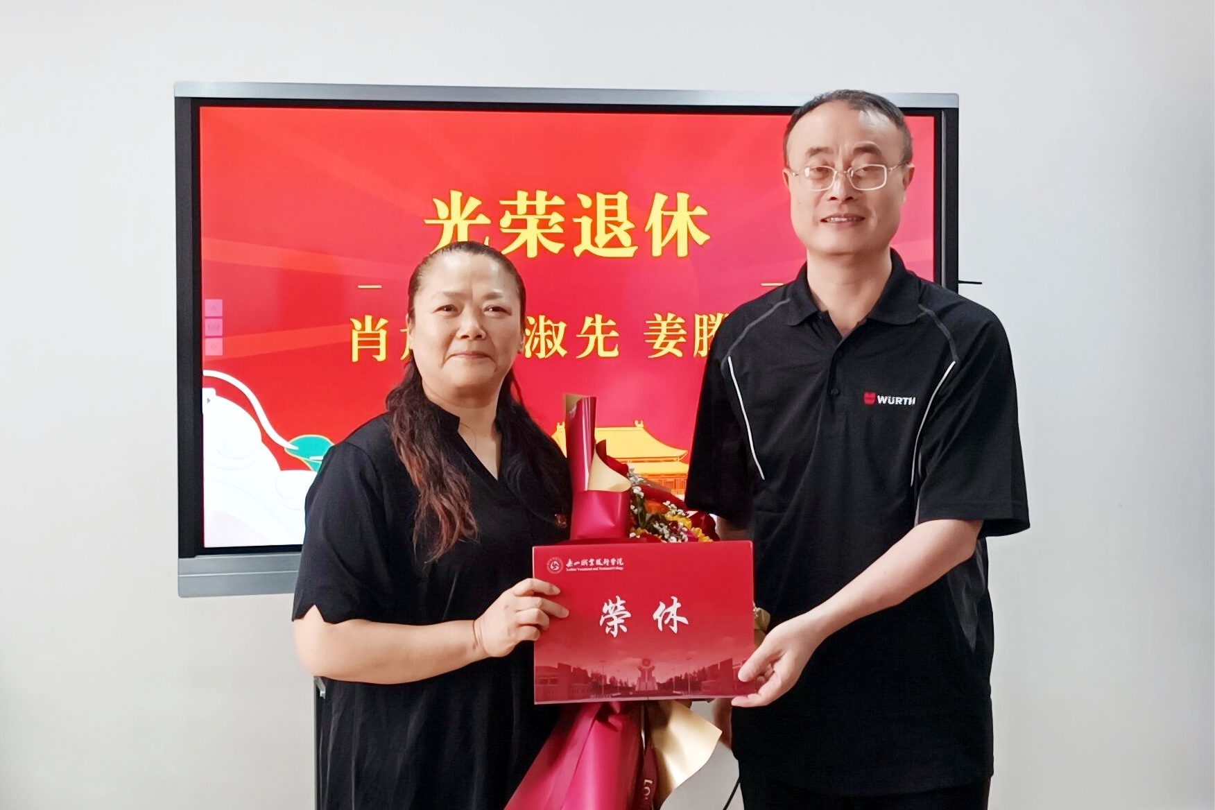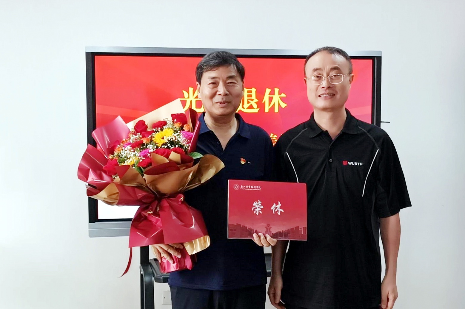 仪式上,刘忠为肖旭、梅淑先、姜腾东3位同志分别颁发荣休证书并献花。他表示,光荣退休是职业生涯的终点,更是人生幸福生活新的起点,他代表全体职工向3位同志的光荣退休表示热烈的祝贺,对他们为学校作出的贡献表示衷心的感谢。