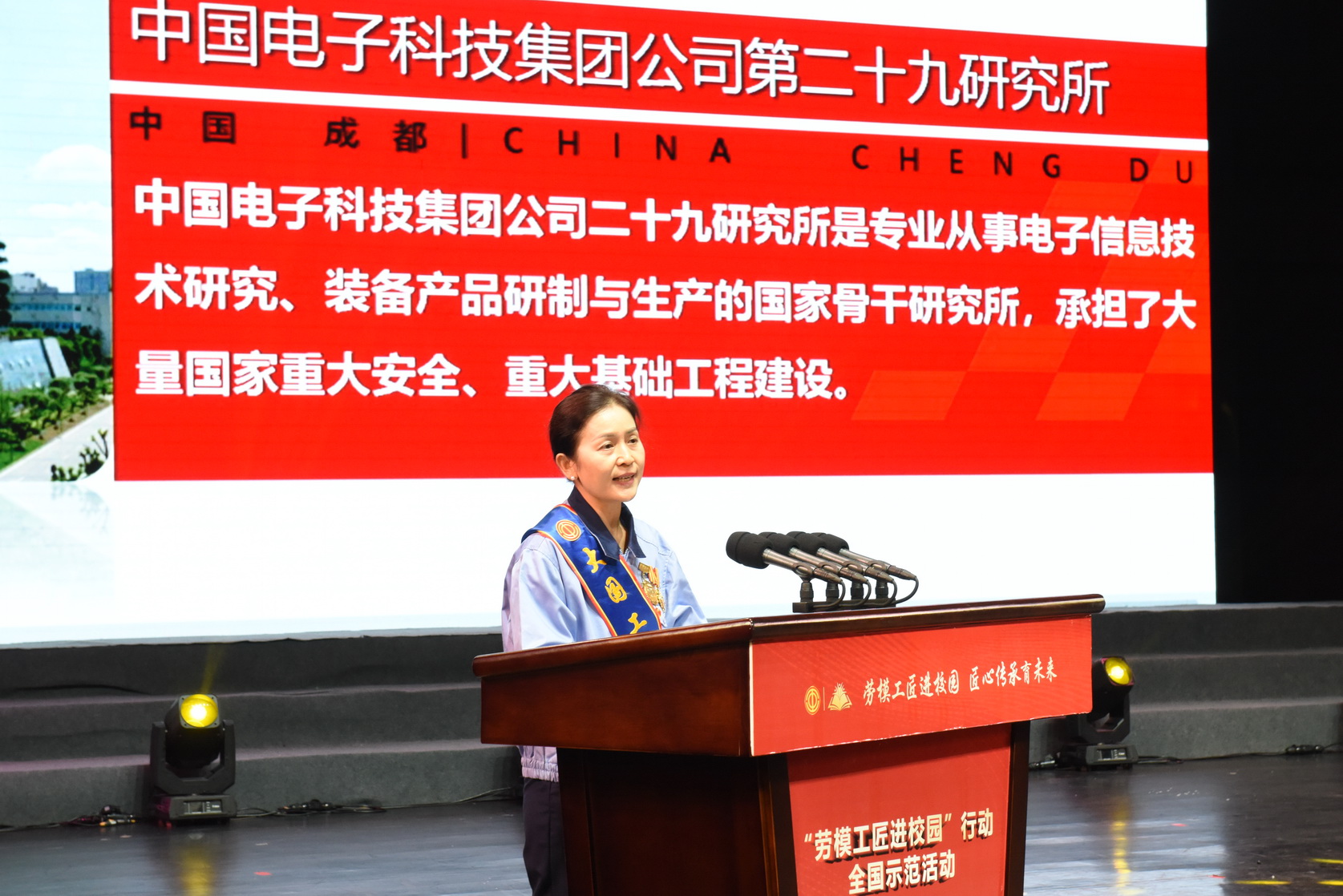 宣讲中,中国电子科技集团公司第二十九研究所高级技师、全国示范性劳模和工匠人才创新工作室领办人潘玉华讲述了自身成长和奋斗经历。通过对梦想的执着以及对工作的热爱,潘玉华攻克了行业公认的微纳互联领域数十项技术难题,保障了我国多项军工装备尖端科技的实现。生动地宣讲让现场学生感受到劳模工匠干一行、爱一行、钻一行的坚定信念。