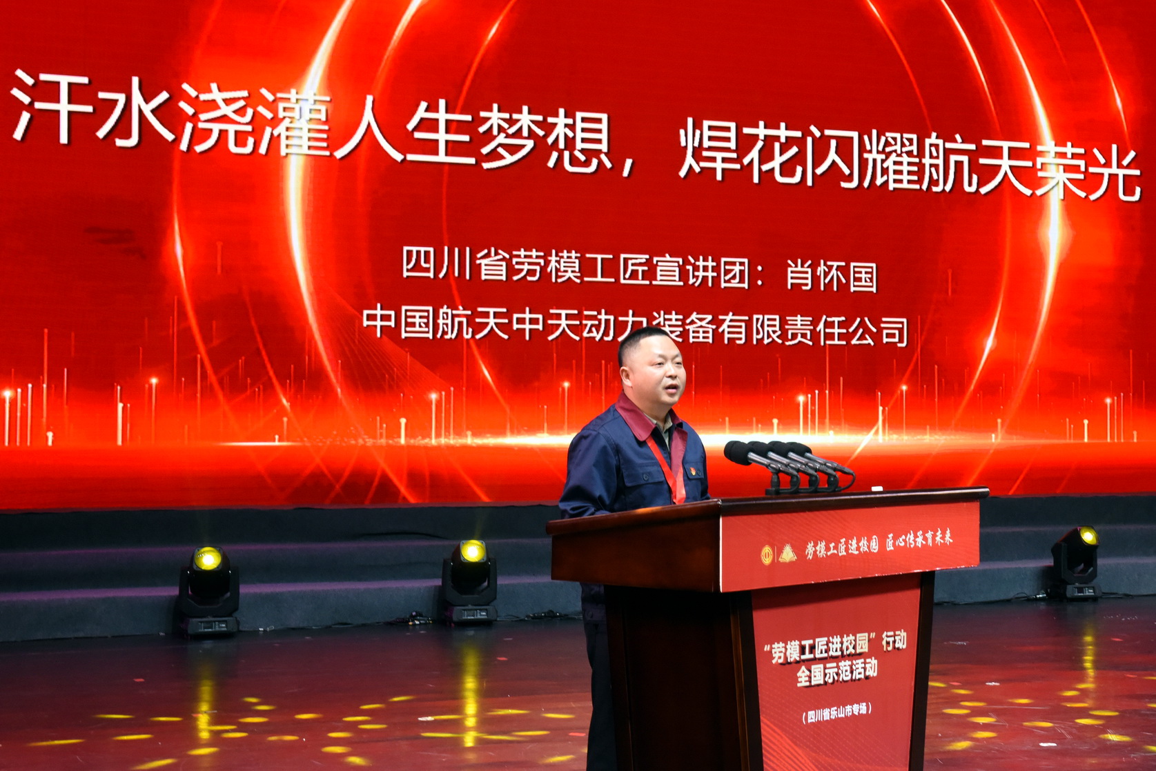 中国航天中天动力装备有限责任公司制造车间党支部副书记、副主任,四川航天职业技术学院客座教授肖怀国用焊花点燃人生梦想,把平凡写进祖国航天事业的奋斗经历也感动了现场的学生。