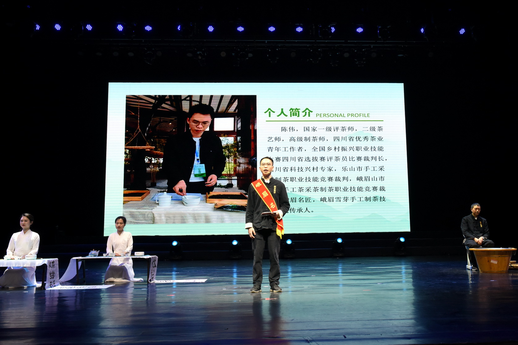 国家一级品茶师、峨眉名匠陈伟则在现场讲述、展示了乐山手工制茶技艺,并分享个人经历。倾注了坚守与传承,凝聚了匠心与创新的茶香萦绕会场。