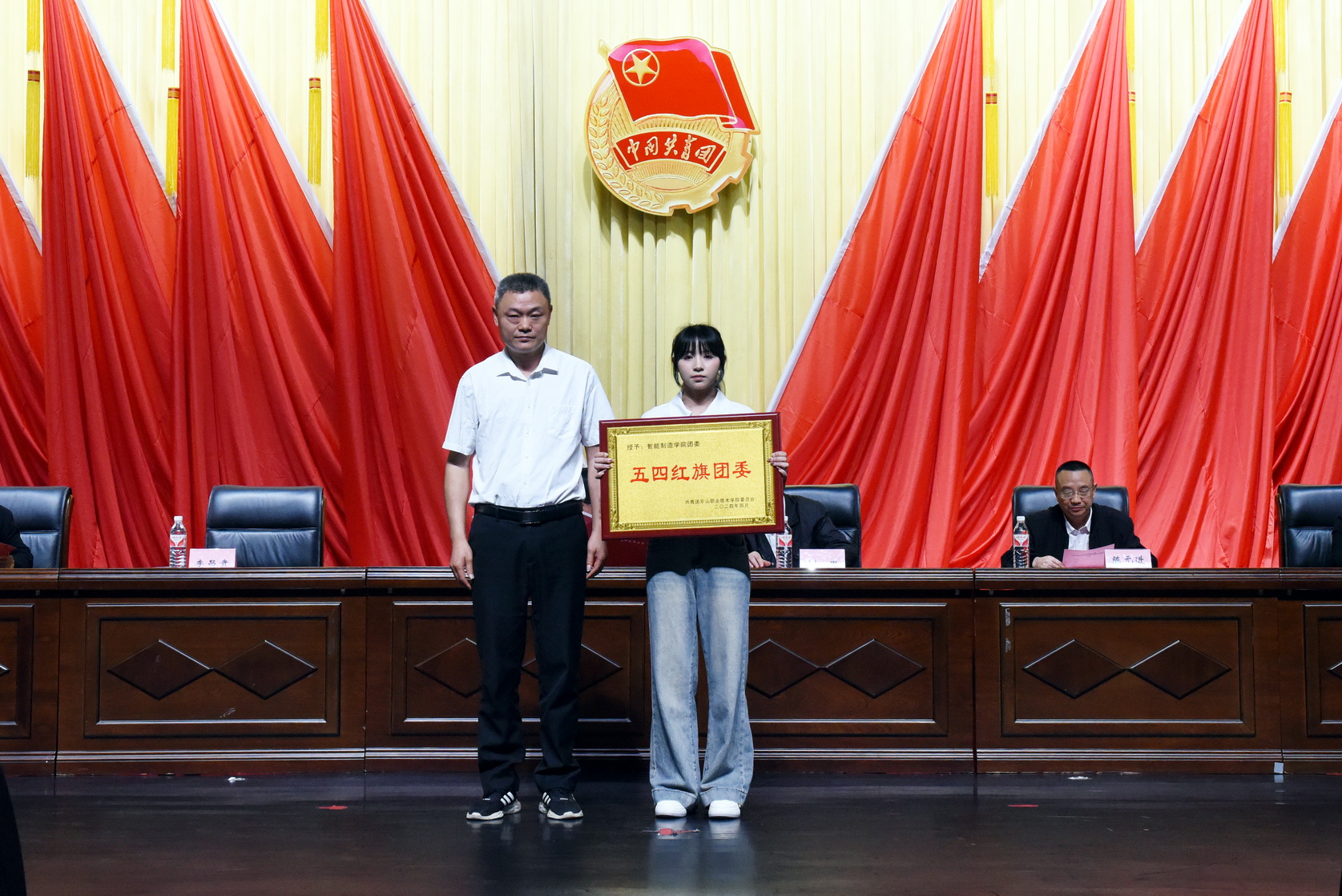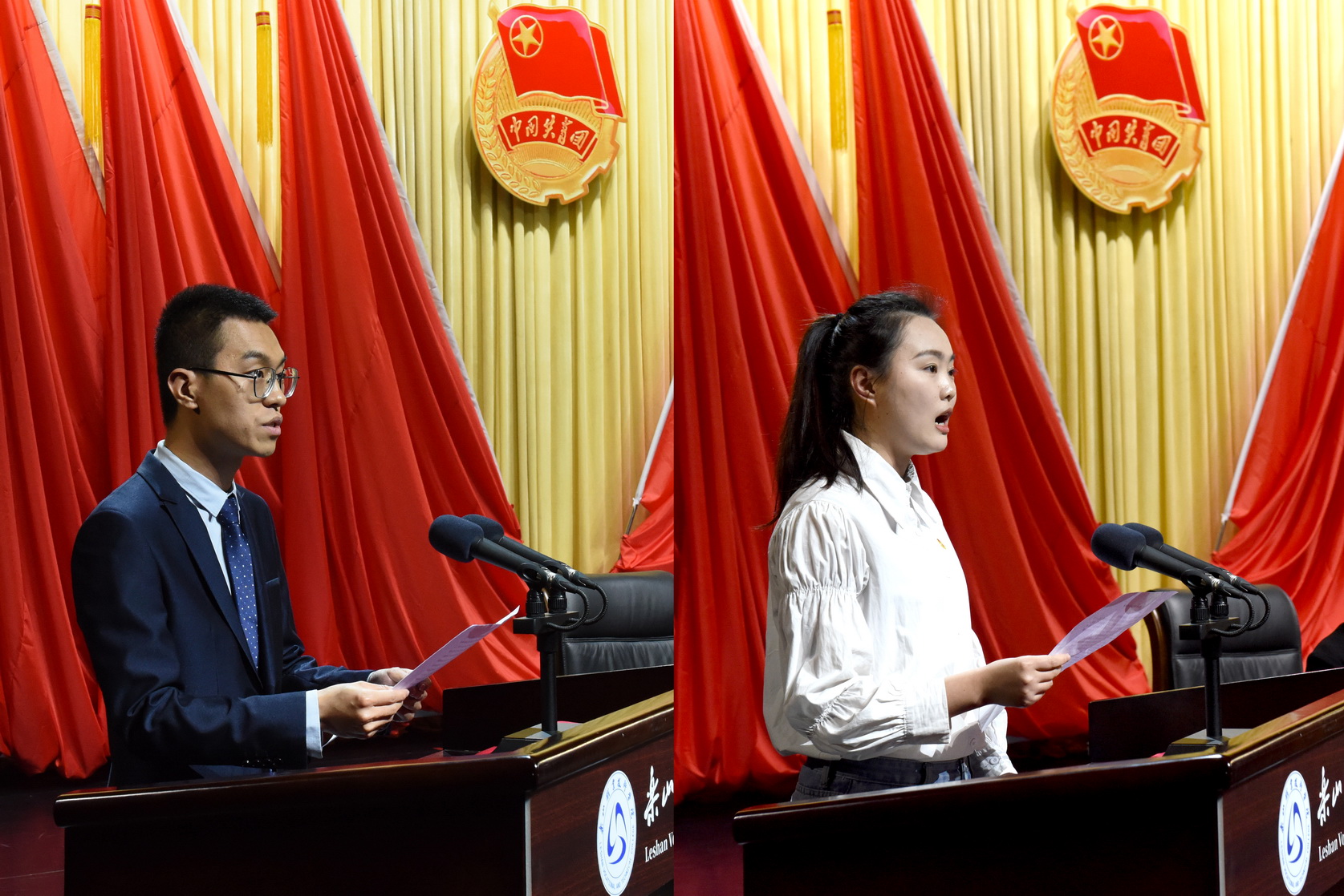 受表彰的学校“五四红旗团委”代表问思童、四川省“优秀团员”李佳佳发言,分享共青团工作经验,表达青春之志。