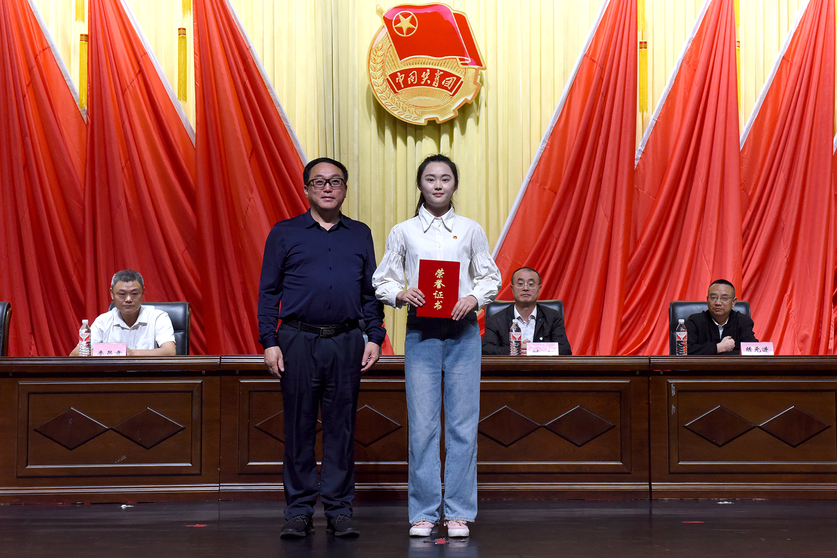 会议宣读了表彰决定并进行了隆重的表彰仪式,学校领导为获得四川省“优秀团员”、乐山市“五四红旗团委”“优秀团员”、学校“五四红旗团委”“青年五四奖章”“优秀团员”“优秀团干部”“先进团支部”“创新创业先进个人”“优秀青年志愿者”“青年志愿者活动先进集体”“青江十大好青年”称号的先进集体和优秀个人代表颁发荣誉奖牌、证书。