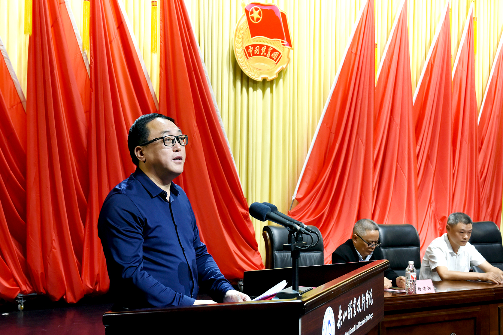 党委书记成定彬代表学校党委致辞,向全校共青团员、青年师生致以节日的问候,向受到表彰的先进集体、先进个人表示热烈的祝贺。成定彬指出,我们要坚持以习近平新时代中国特色社会主义思想为指导,以朝气蓬勃、锐意进取的精神状态投身于求学从业、服务人民的伟大实践,为早日建成现代化国家,实现中华民族伟大复兴贡献青春力量。成定彬寄语乐职青年学子,要赓续五四精神,强化使命担当,争做信念坚定的爱国者;要读万卷书,行万里路,练就过硬本领,争做新时代的奋斗者;要勇于开拓进取,提升创新能力,争做新时代创新驱动发展的排头兵。他希望大家在实现中国梦的伟大征程中,谱写出无愧于伟大祖国、无愧于伟大时代、无愧于青春的壮丽篇章。