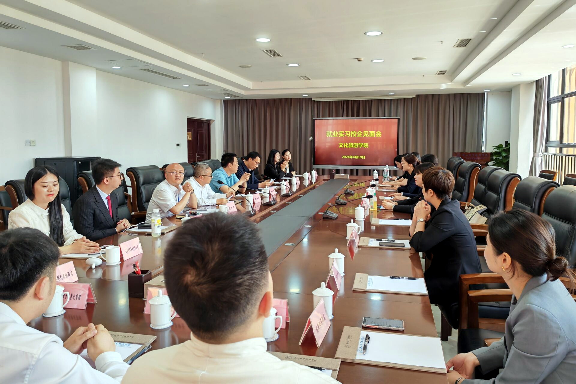4月19日上午,文化旅游学院在学术交流中心2001会议室组织召开了就业实习校企见面会,与学校有深度合作的20余家文旅企业代表参加了会议。学校党委委员、副校长张学河出席会议并讲话,学生工作部、文化旅游学院有关负责人参加了会议。