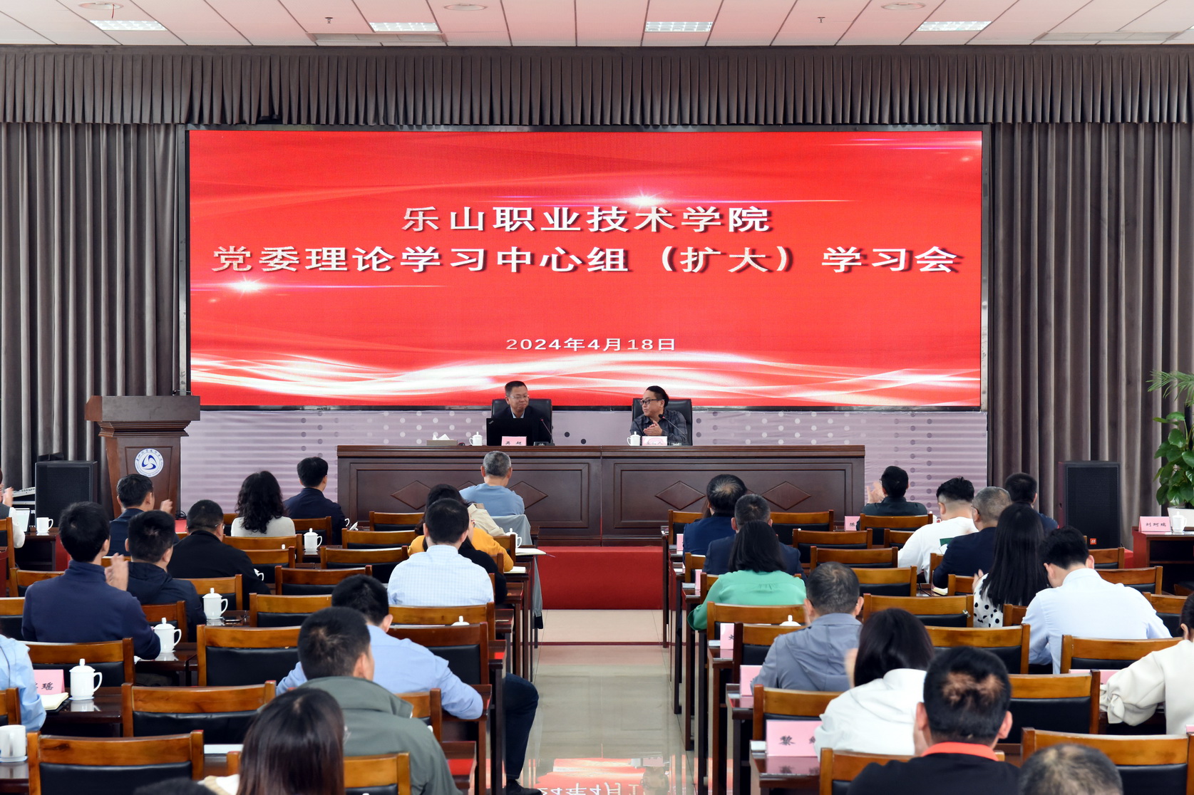 4月18日下午,sunbet申搏官方网站党委理论学习中心组(扩大)学习会在学术交流中心3004会议室举行。乐山移动党委书记、总经理吴超来校作学习贯彻习近平总书记关于网络强国的重要思想辅导报告。校领导、中层干部、教研室主任参加学习。会议由学校党委书记成定彬主持。