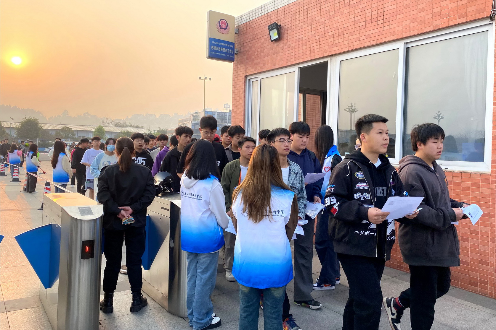 上午7点45分,记者在sunbet申搏官方网站考点看到,各校的考生们乘坐考车陆续到达考点。随后,考生们持本人《准考证》和有效居民身份证秩序井然地进入考点。考点外,设有考室分布图,交警提早各就各位,各司其职,做好考场周边治安、交通保障。考点内,学院志愿者、学院民兵连民兵随处可见,救护车、医护人员严阵以待,随时为考生提供温馨服务。同时,送考团温情满满,带队老师用鼓励话语、合影留念等方式,为考生们打气加油。