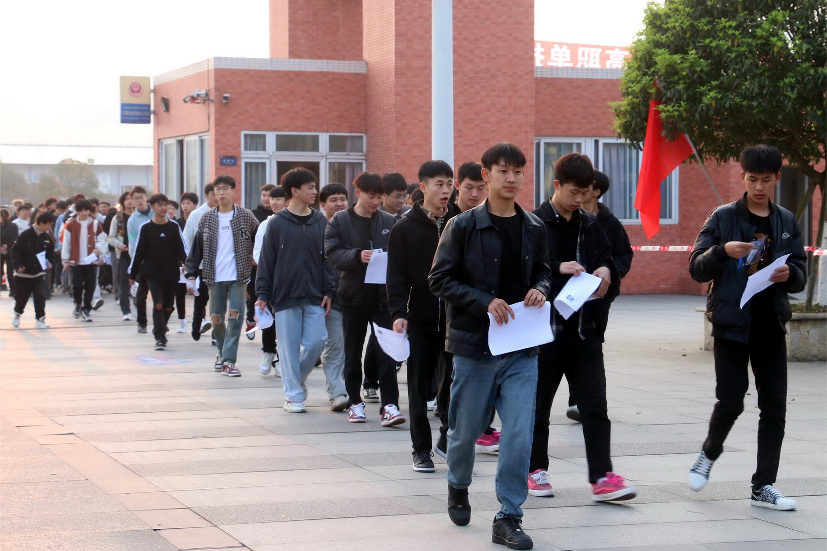 直至8点,考点内工作人员开始陆续分批组织考生们进入考场,在工作人员的引导下,考生先将手机、充电器等电子产品放入手机柜,再正常通过“智能安检门”、放置好书包后进入考场,现场一切安排得井井有条。待开考铃响起,考生们开始答题,监考老师严格执行考试规则,确保考试过程严谨、公正进行。