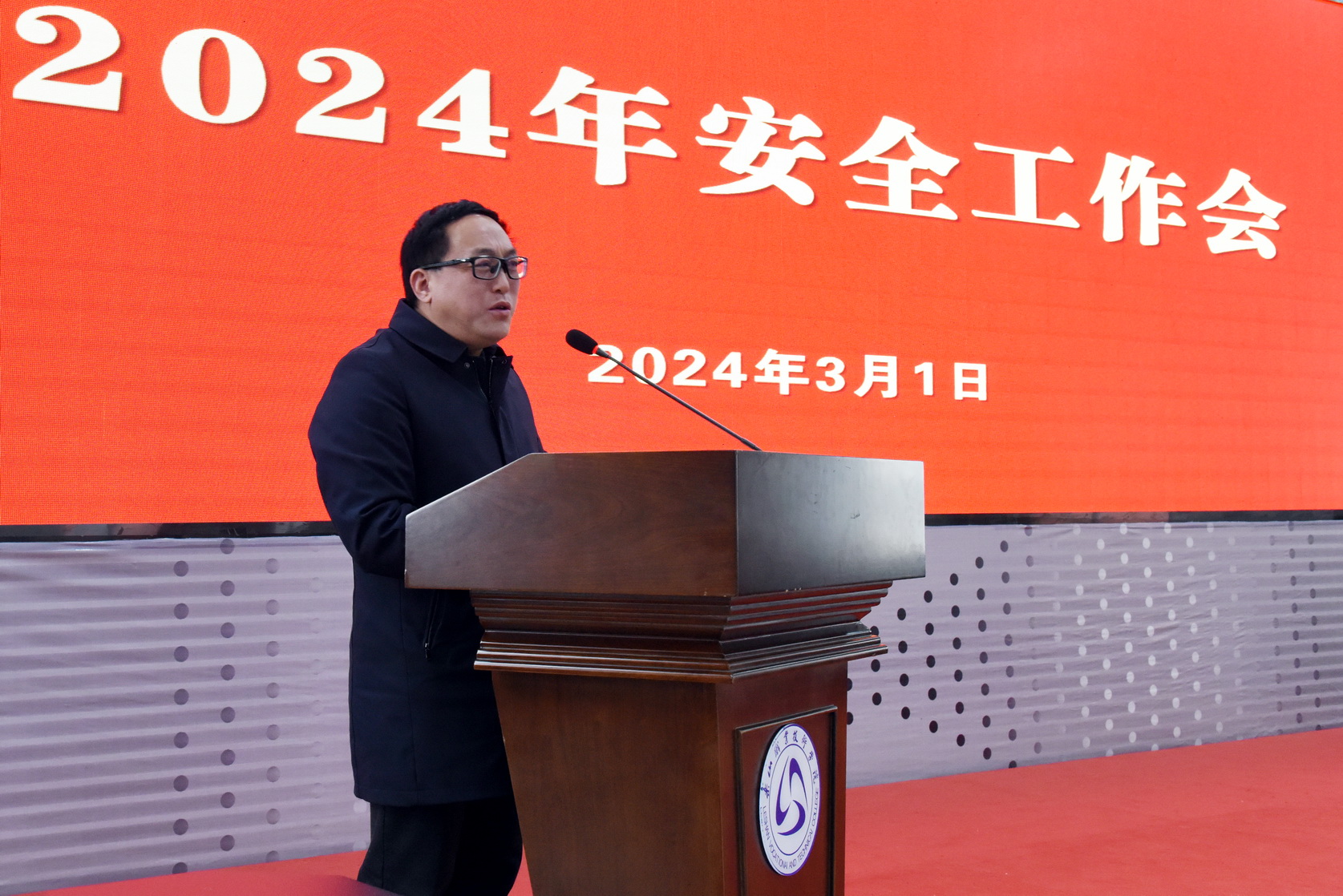 3月1日下午,sunbet申搏官方网站2024年安全工作大会在学术交流中心3004会议室召开。会议传达学习了全省教育系统安全工作会议精神,安排部署了学校2024年安全工作。学校领导班子,中层干部,全体专兼职辅导员、宿管员等学生管理人员,安保、后勤、国有企业、物业、食堂、超市、学术交流中心等相关服务保障人员,实验室管理、危化品室管理相关人员以及奥校、附属医院相关负责同志参会。会议由学校党委副书记、工会主席张佳主持。