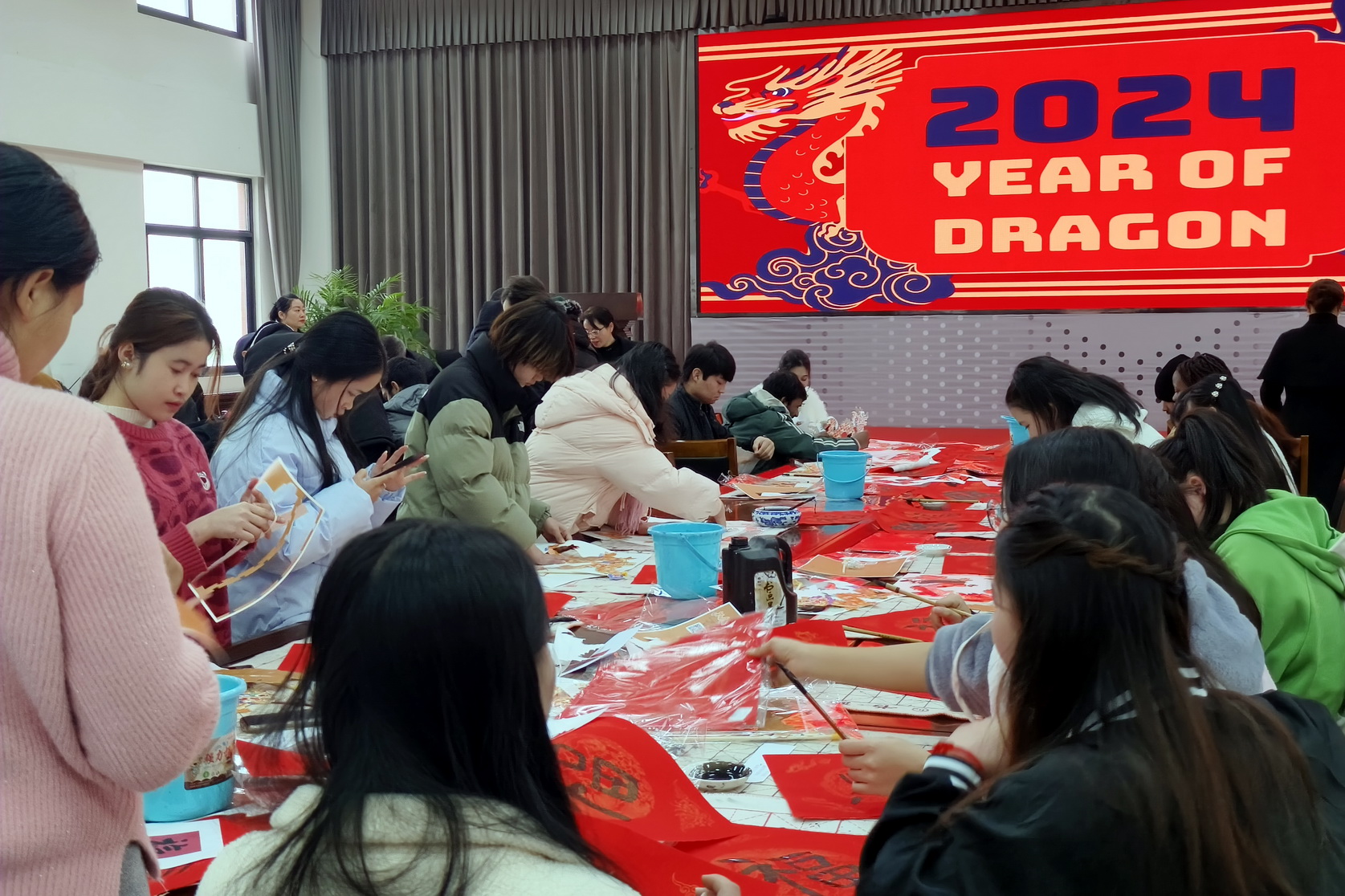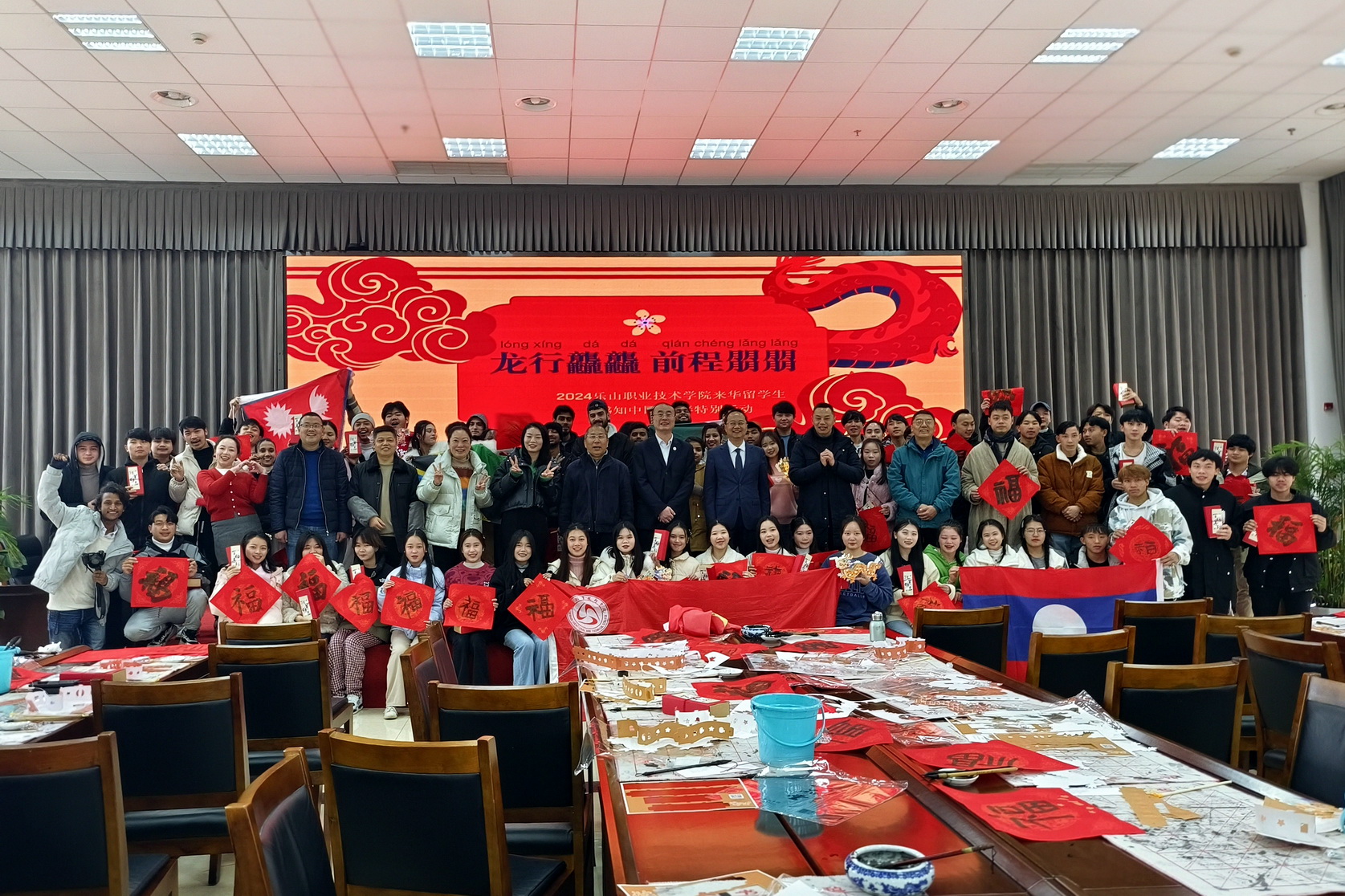 为了让来华留学生切身感受中国传统春节喜庆祥和的节日气氛,2024年2月7日,sunbet申搏官方网站举办主题为“龙行龘龘 前程朤朤”来华留学生“感知中国”龙年春节文化体验特别活动。学校校长刘忠,党委副书记张佳,国际学院教师以及学校书法协会的老师们与假期留在学校的来华留学生同贺新春。