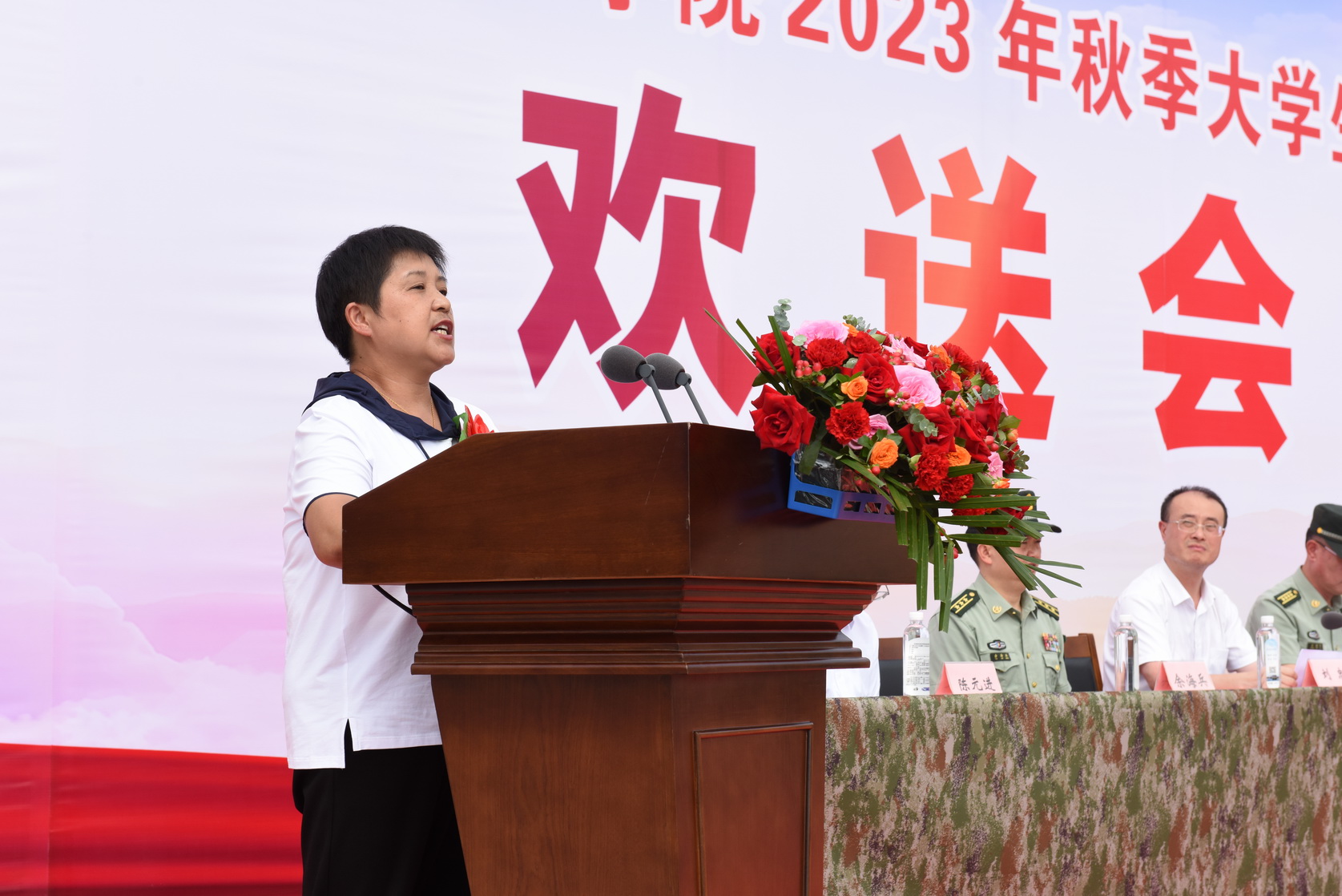 欢送大会上,成定彬为新入伍的同学们颁发了“最美大学生”荣誉证书,应征入伍学生代表及入伍学生家长代表在会上作了热情洋溢的发言。