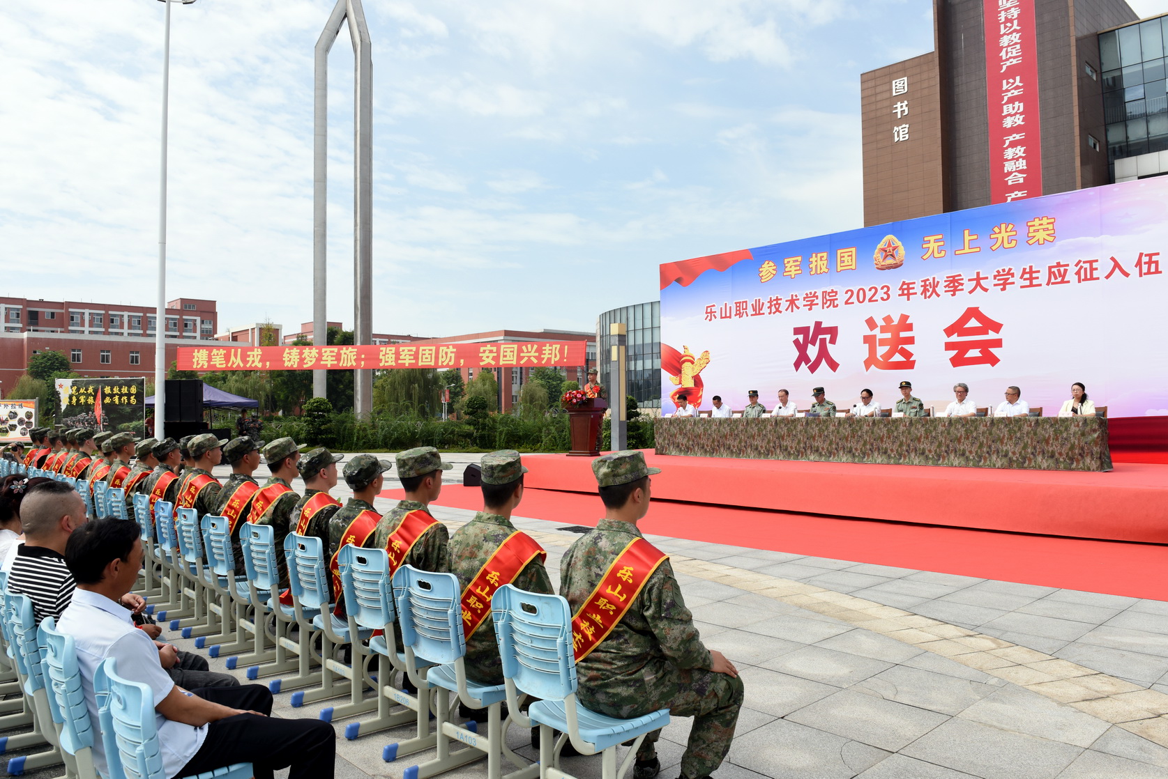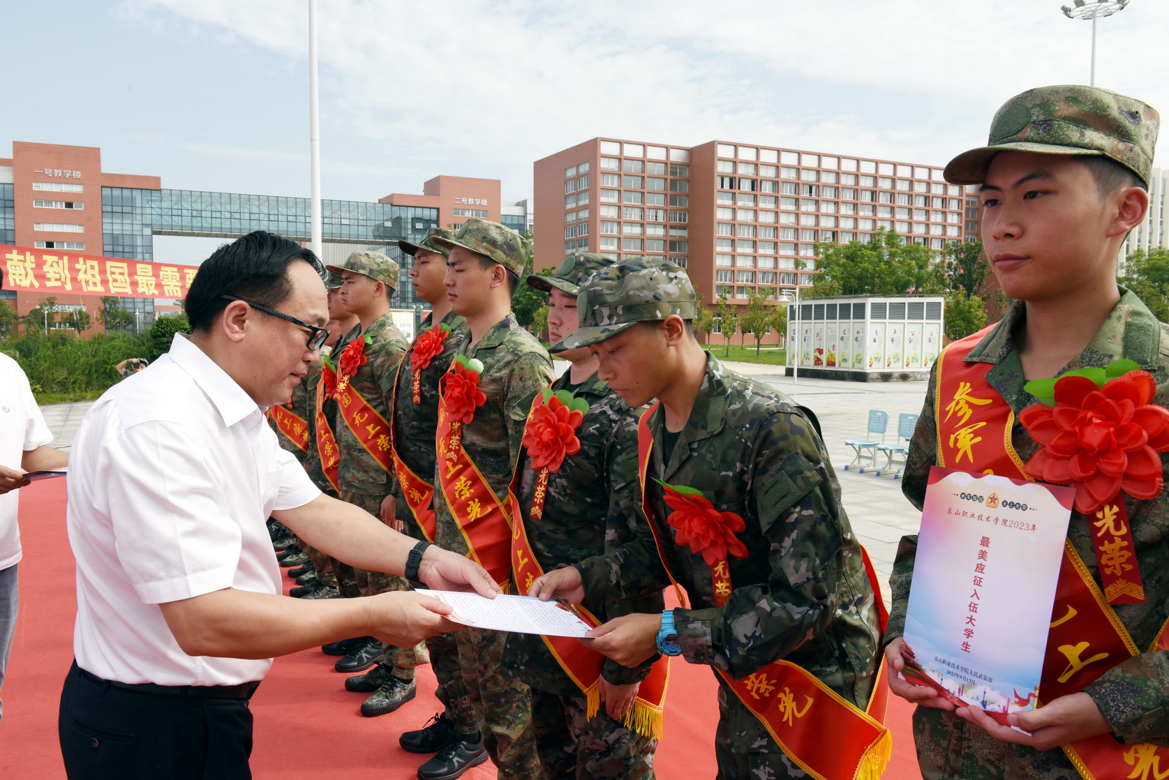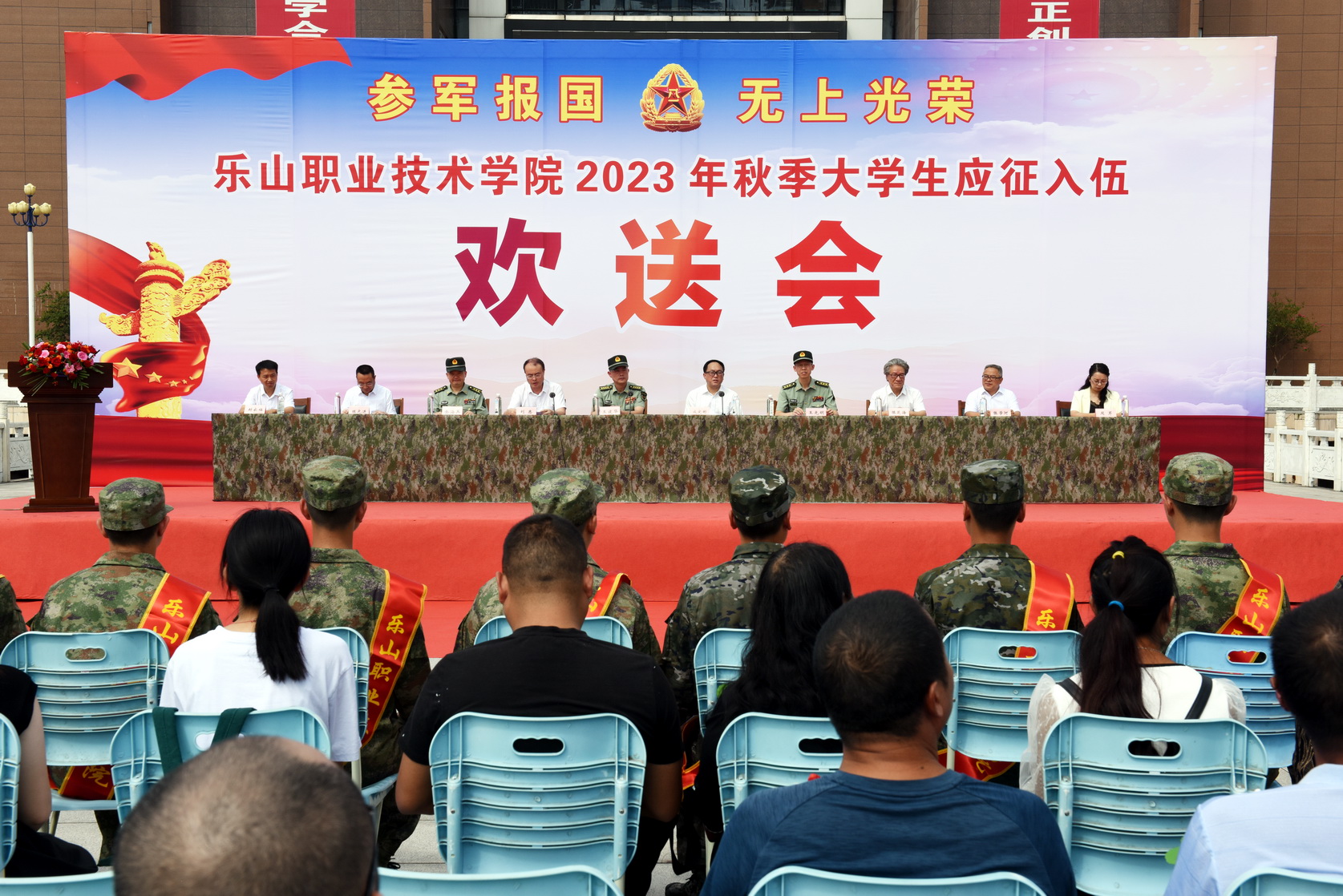 9月13日上午,sunbet申搏官方网站2023年秋季新兵入伍欢送会在图书馆前广场举行。中共乐山市委常委、军分区司令员王建华,军分区动员处处长王光明,市中区武装部政委余海兵,学校领导及相关处室负责人,二级学院党总支书记、专职副书记出席了欢送大会,2023年秋季入伍新兵及家长、2023级军训新生参加了欢送活动。欢送会由学校校长刘忠主持。