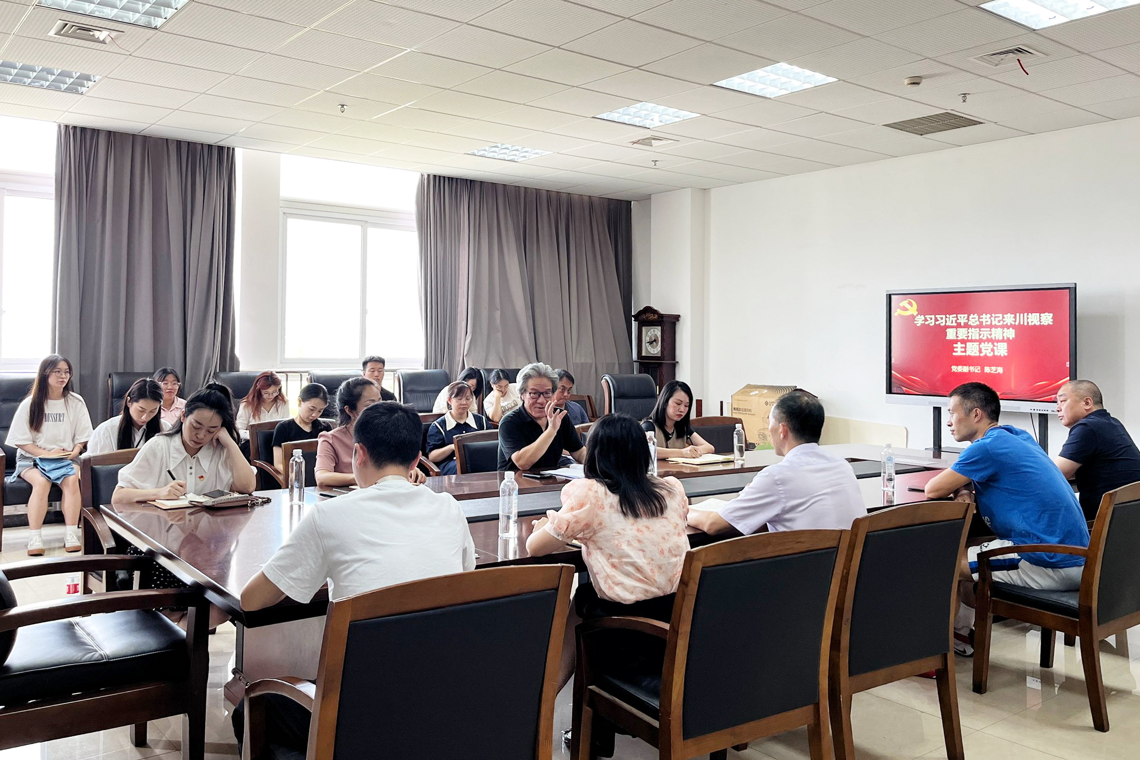 为了深入学习贯彻习近平总书记来川视察重要指示精神,切实广泛统一思想行动,9月6日下午,学校党委副书记、工会主席陈芝海以“牢记嘱托担使命,感恩奋进新征程”为主题,在2号教研楼301会议室为中医康养学院和现代农业学院的全体党员及学生入党积极分子讲了一堂主题鲜明、立意深远的专题党课。